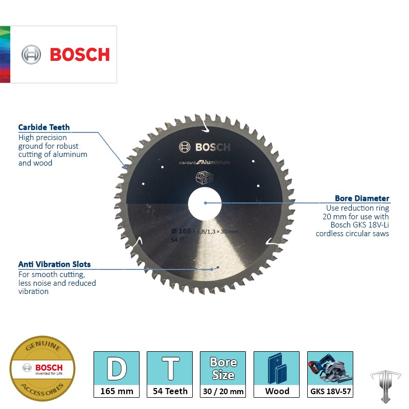 Bosch 2608837764 Saw Blade 165 mm Standard for Aluminum 54 Teeth for Bosch GKS 18V-Li