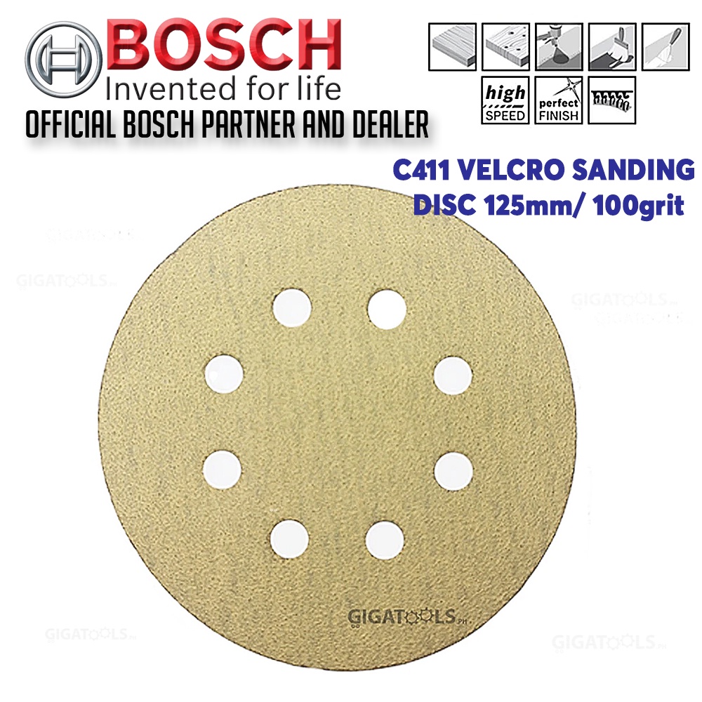 Bosch C411 Velcro Sanding Discs 125 mm / 100 grit For Random Orbital Sanders ( 2608608T66 )
