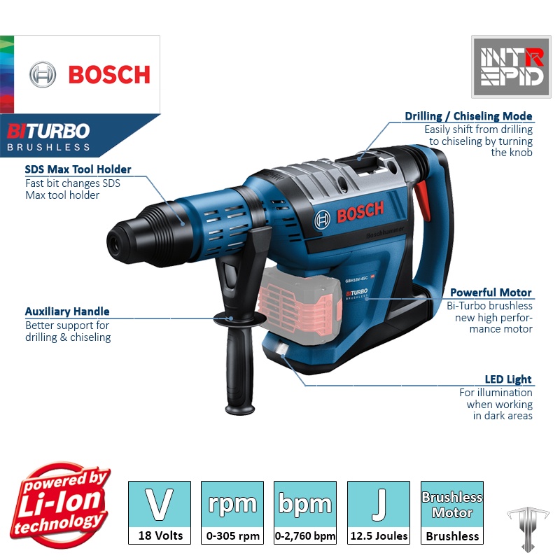Bosch GBH 18V-45 C Professional 18 V BI-TURBO Brushless SDS Max Rotary Hammer (Bare Tool)
