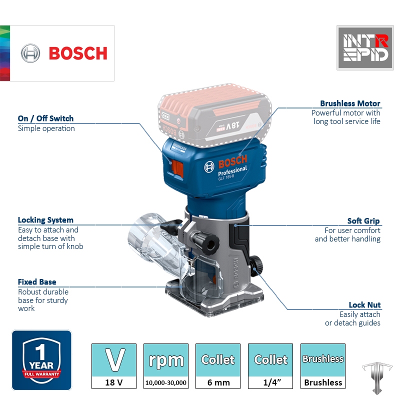 Bosch GLF 18V-8 Professional 18 V Brushless Cordless Palm Router (Bare Tool)