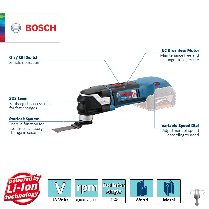 Bosch GOP 18V-28 Professional 18 V EC Brushless Cordless Multi-Cutter (Bare Tool)