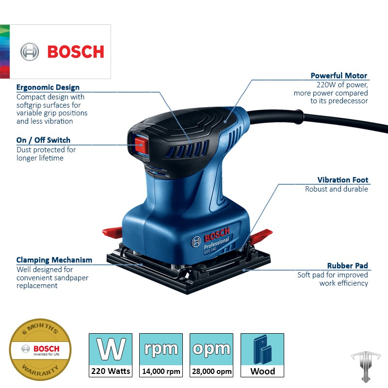Bosch GSS 140 Professional 220 W Orbital Sander Contractor's Choice Power Tool