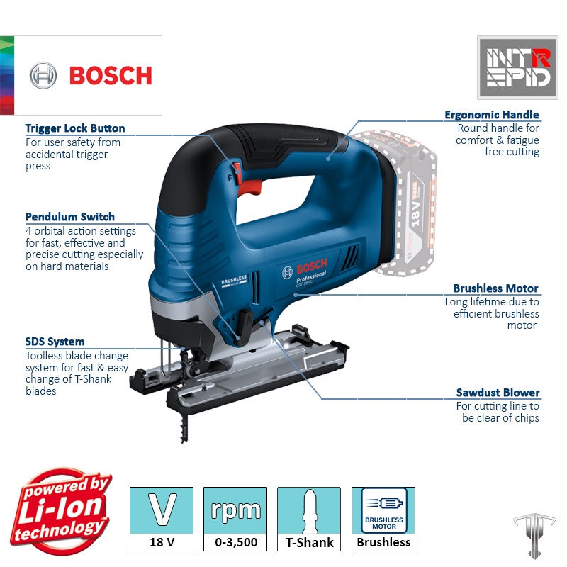 Bosch GST 185-Li Professional 18 V Brushless Cordless Jigsaw (Bare Tool)