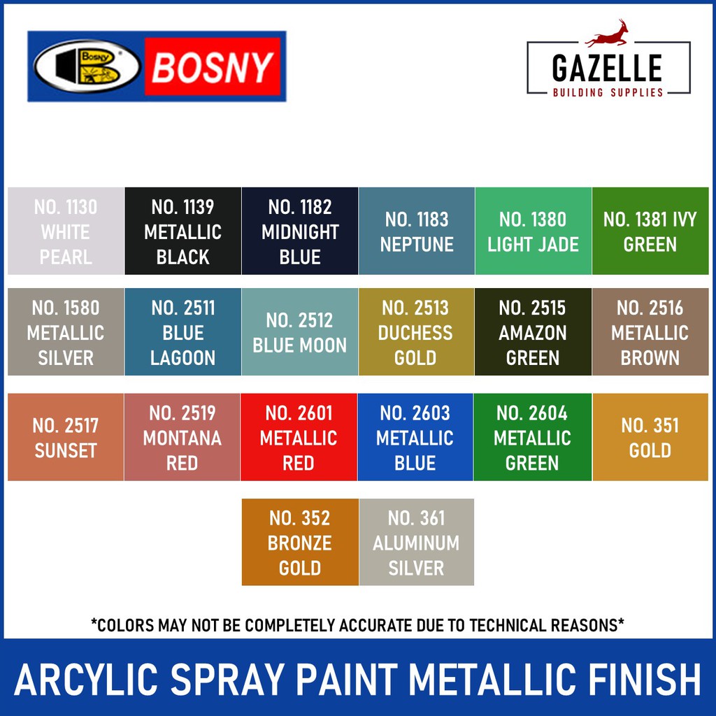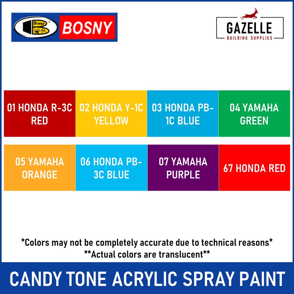 Bosny 100% Acrylic Spray Paint Pearl Metallic Finish Candy Tone Metal