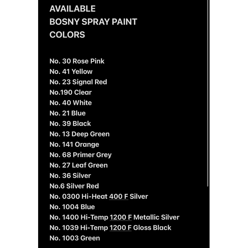 Bosny Spray Paint (Available Colors Here)