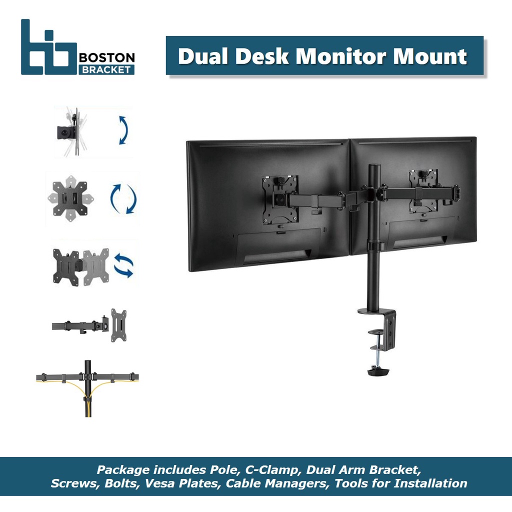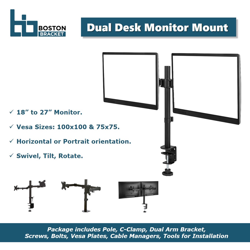 Boston Bracket Dual Desk Monitor Mount With C-Clamp