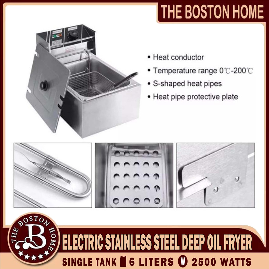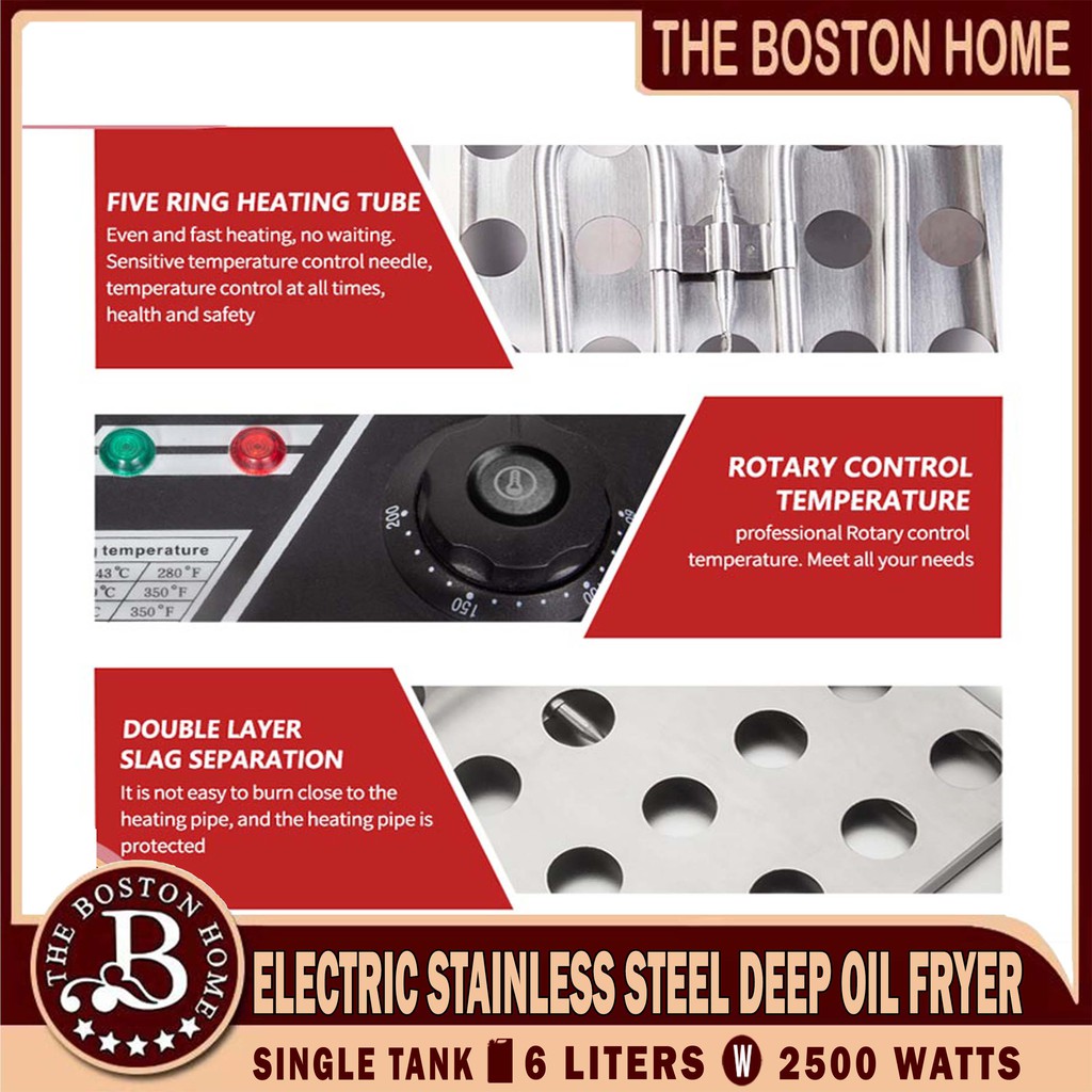 Boston Home Deep Fryer Electric Stainless Steel Deep Oil Fryer Machine 6Liters