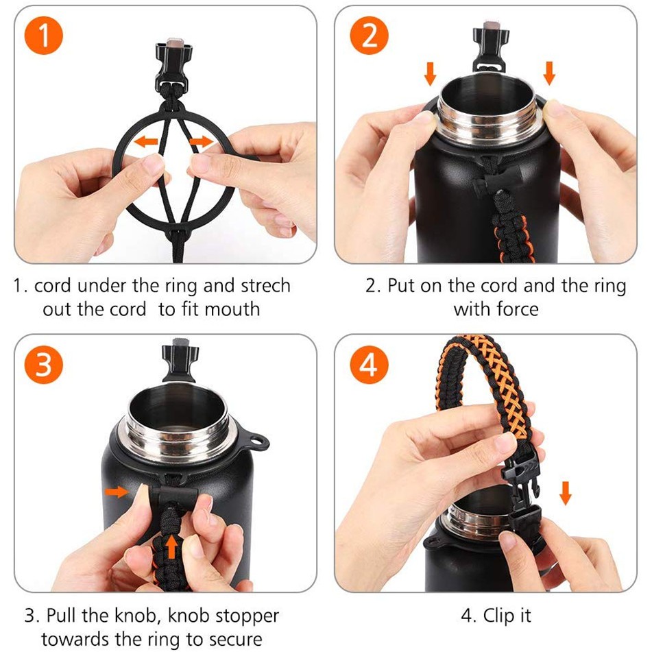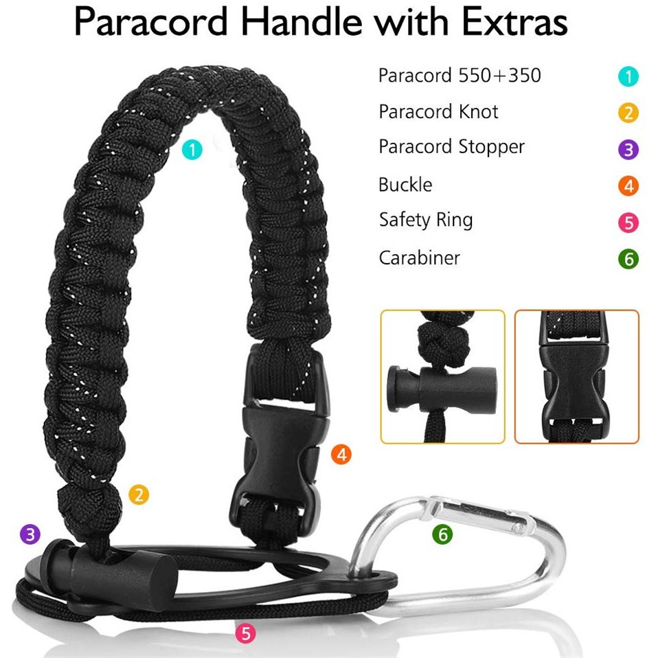 Bottle Paracord Handle Strap For Aquaflask Accessories 14 18 22 32 40 And 64oz Wide Mouth Bottles Rope With Safety Ring Carabiner