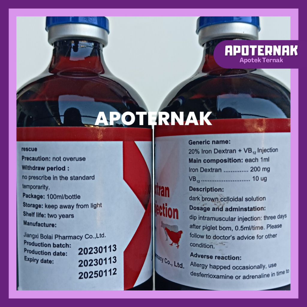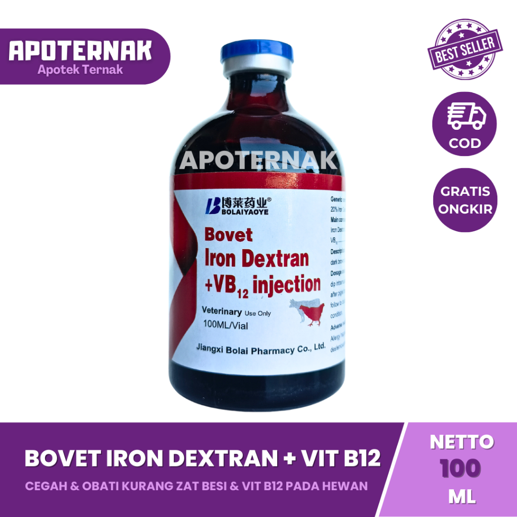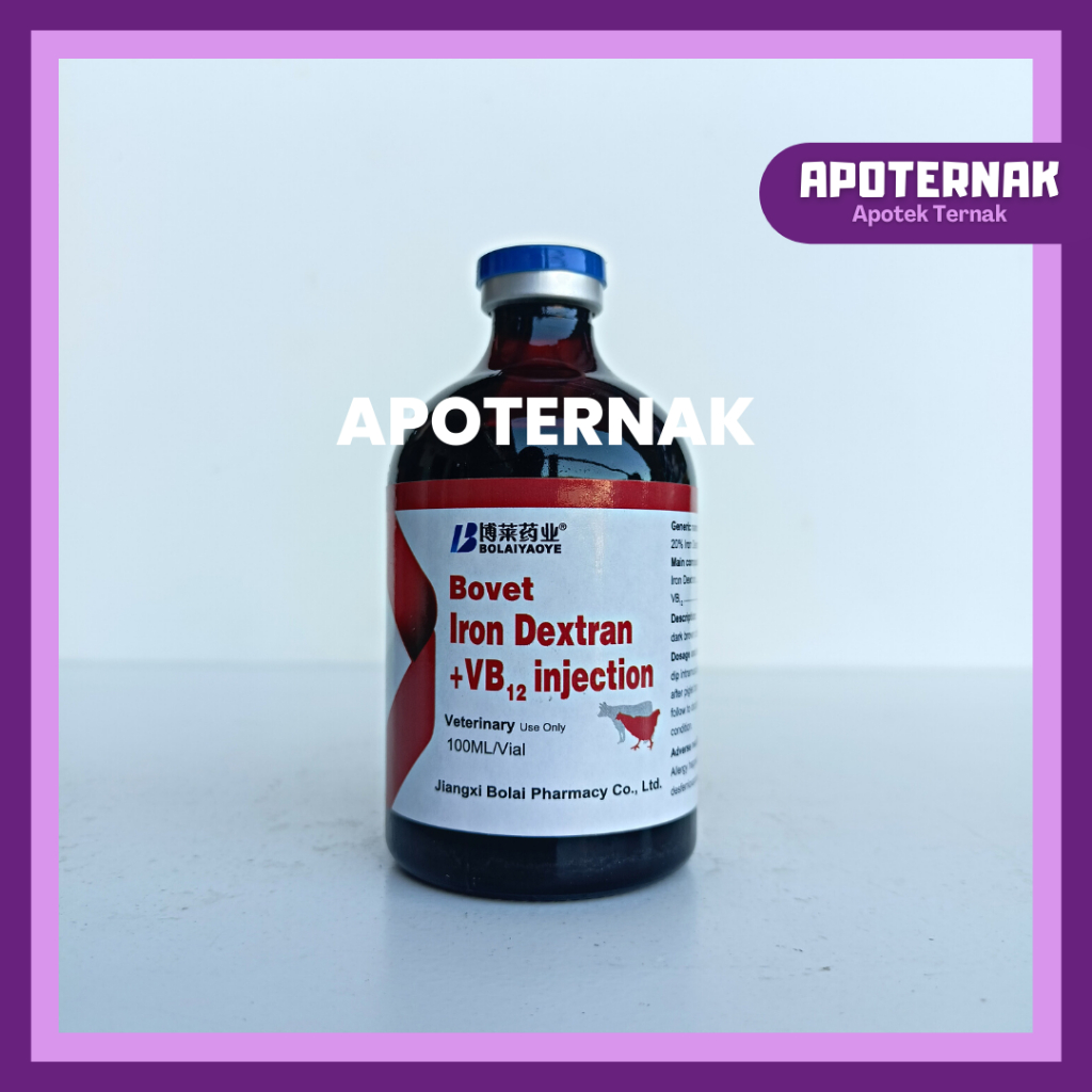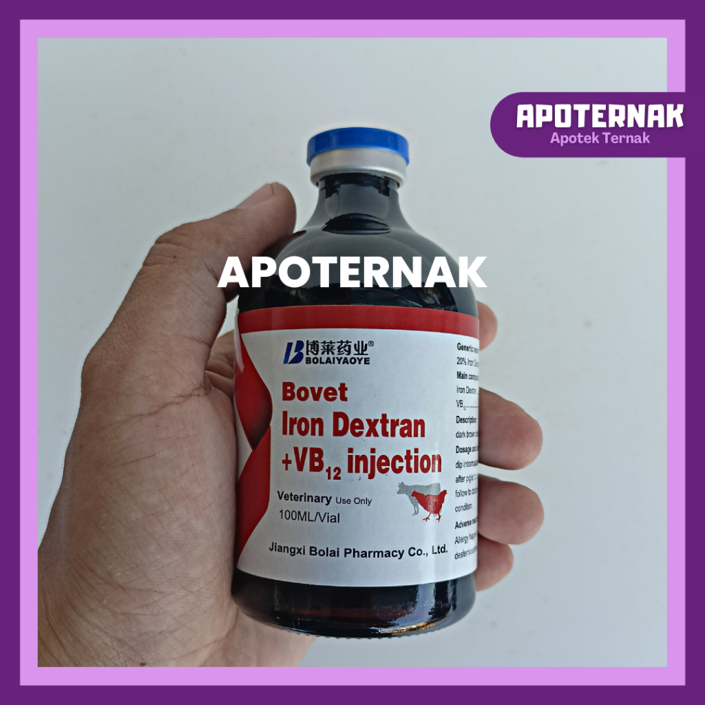 BOVET Iron Dextran 100 ml - Iron Dextran + Vitamin B12 - Prevents Iron Deficiency in Farm Animals - Like Ferdex Plus
