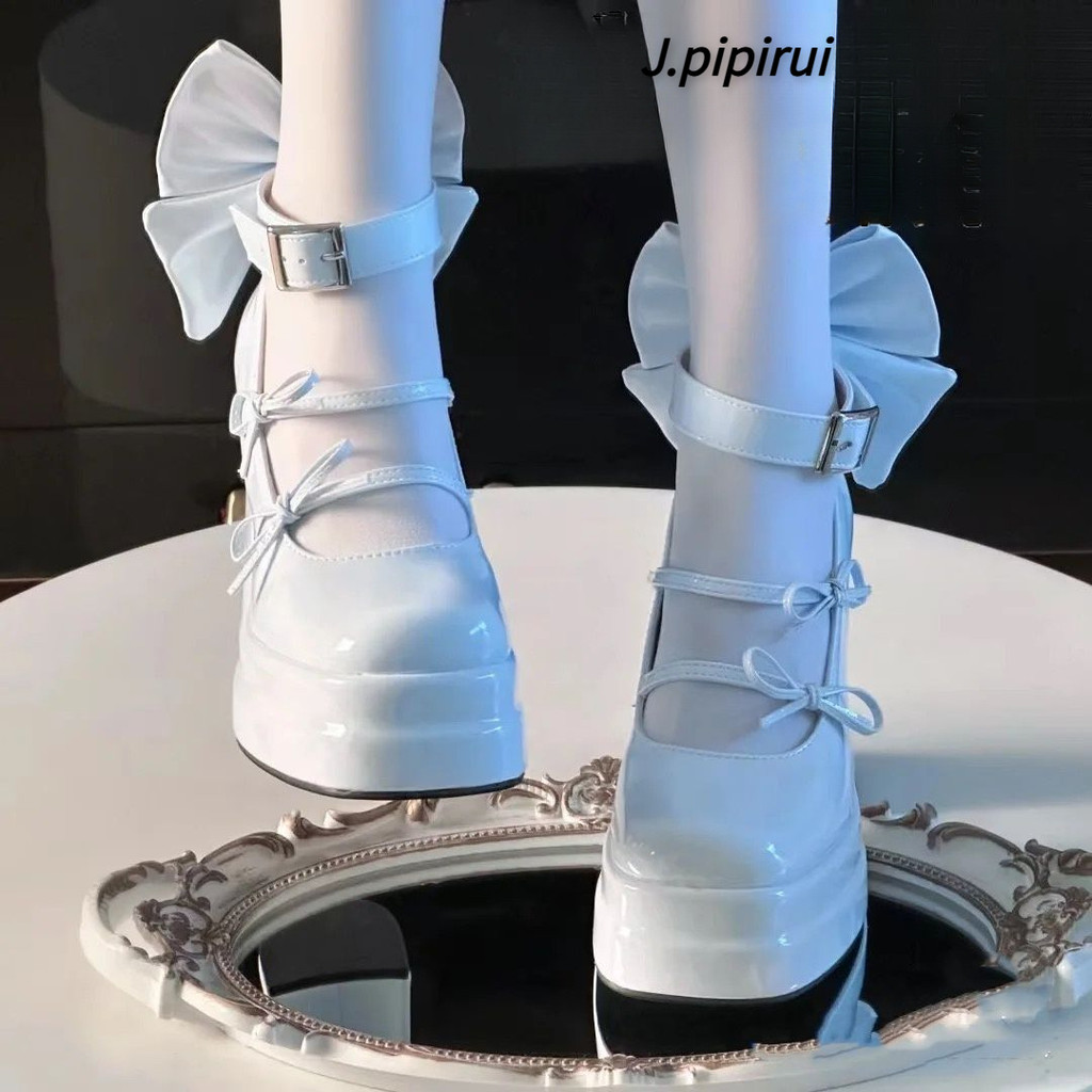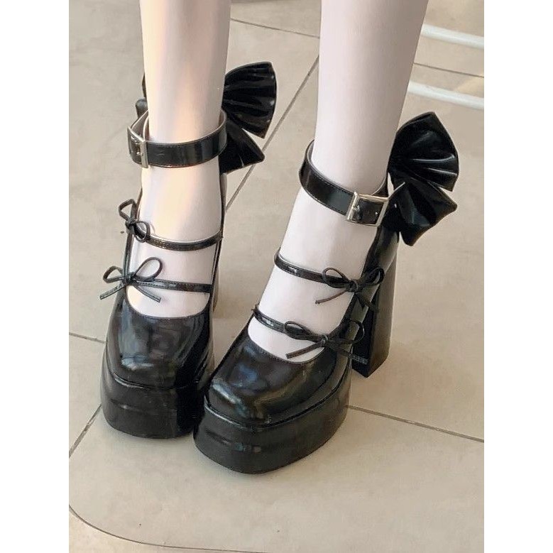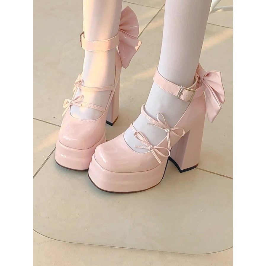 Bow High Heel Mary Jane Shoes Waterproof Platform Lolita Shoes Cute Sweet Japanese Pumps