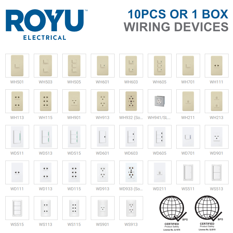 Box Royu Classic & Wide 1, 2, 3 Gang Switch, Outlet, Duplex, AC Outlet, 3 Way Electrical Devices Set