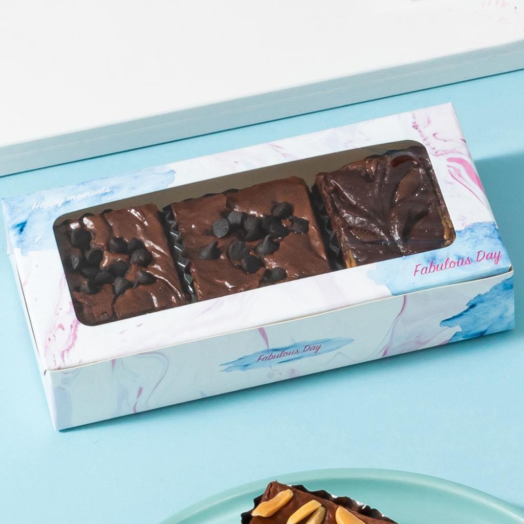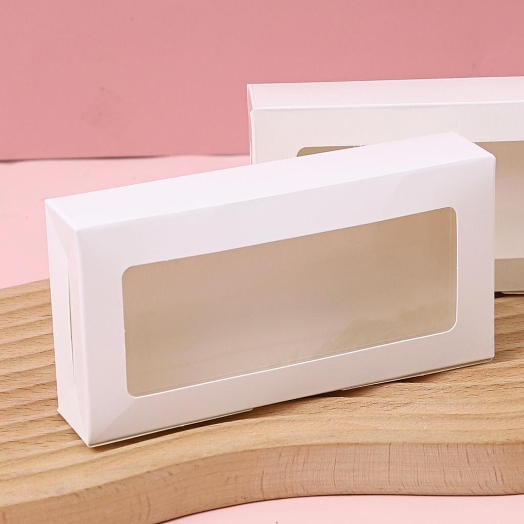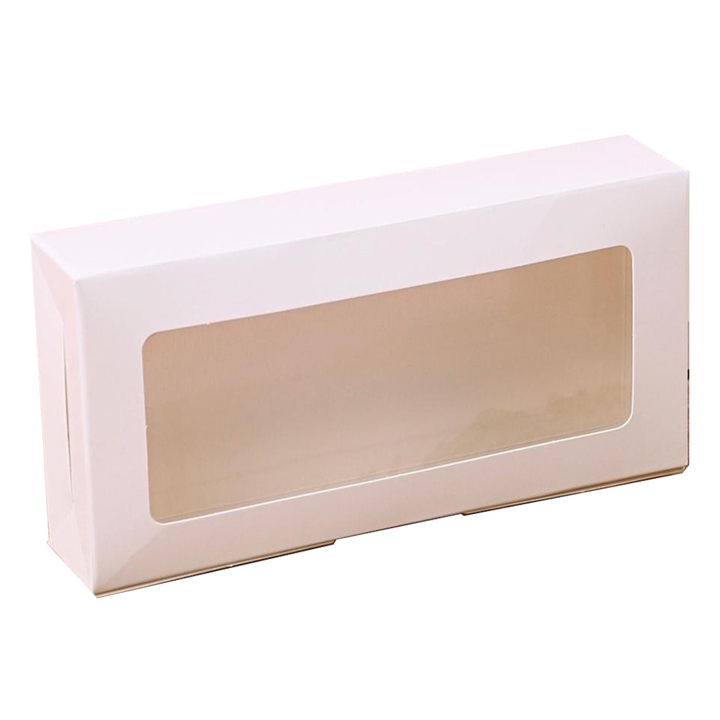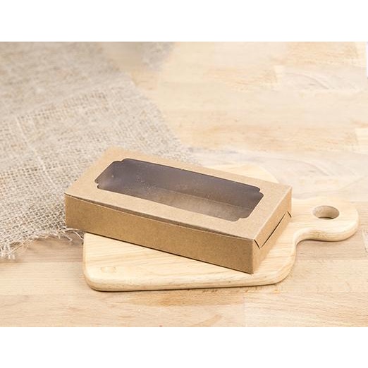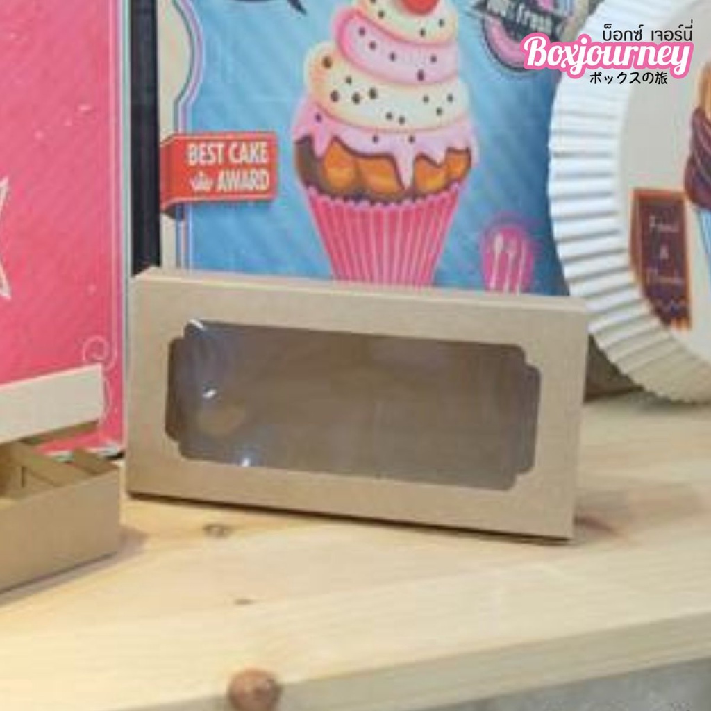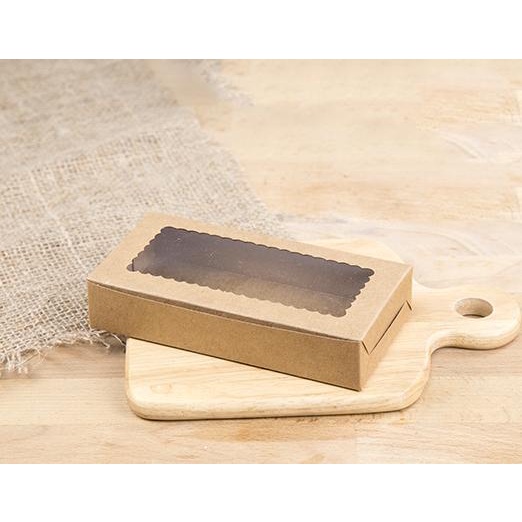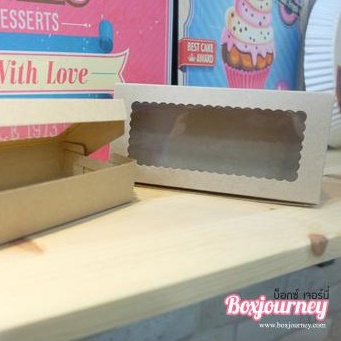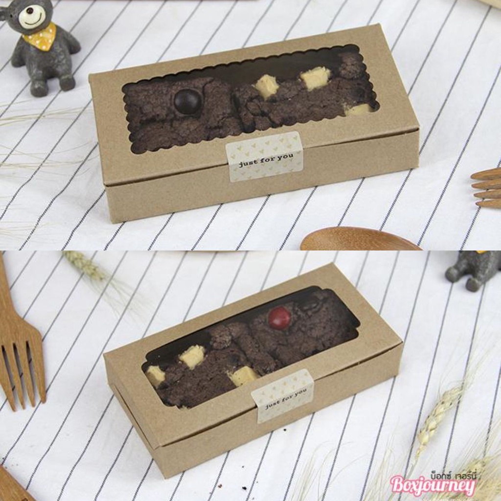 Boxjourney 2-Piece Brownie Box With Wavy Window/Square Window White/Kraft Color/Printed Pattern 7.4 x 14.6 x 3 Cm. (20 Sheets/Pack)