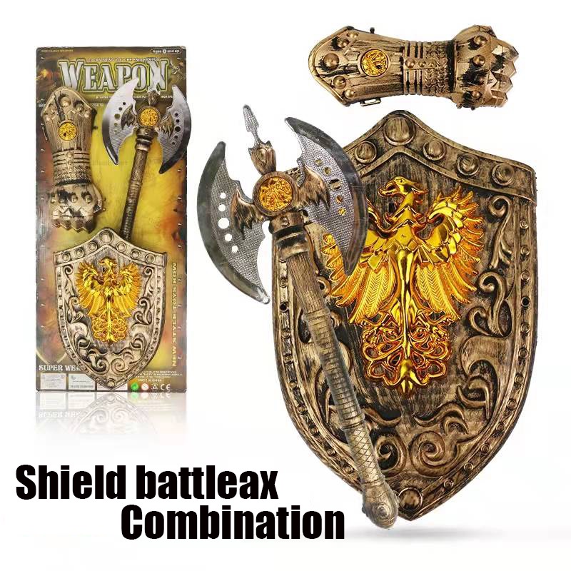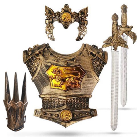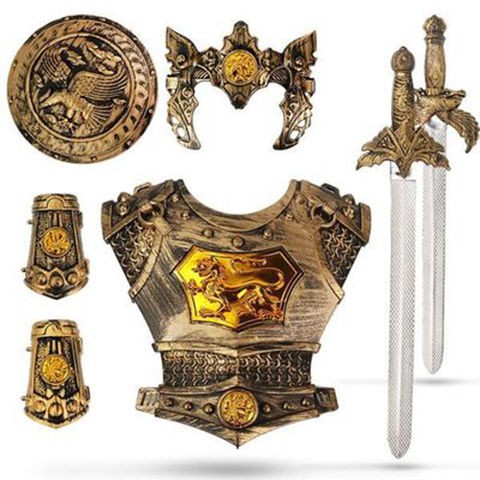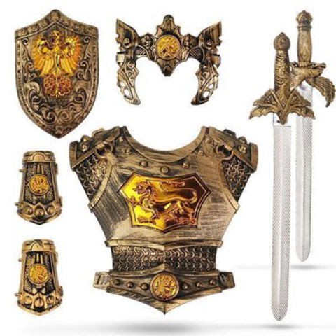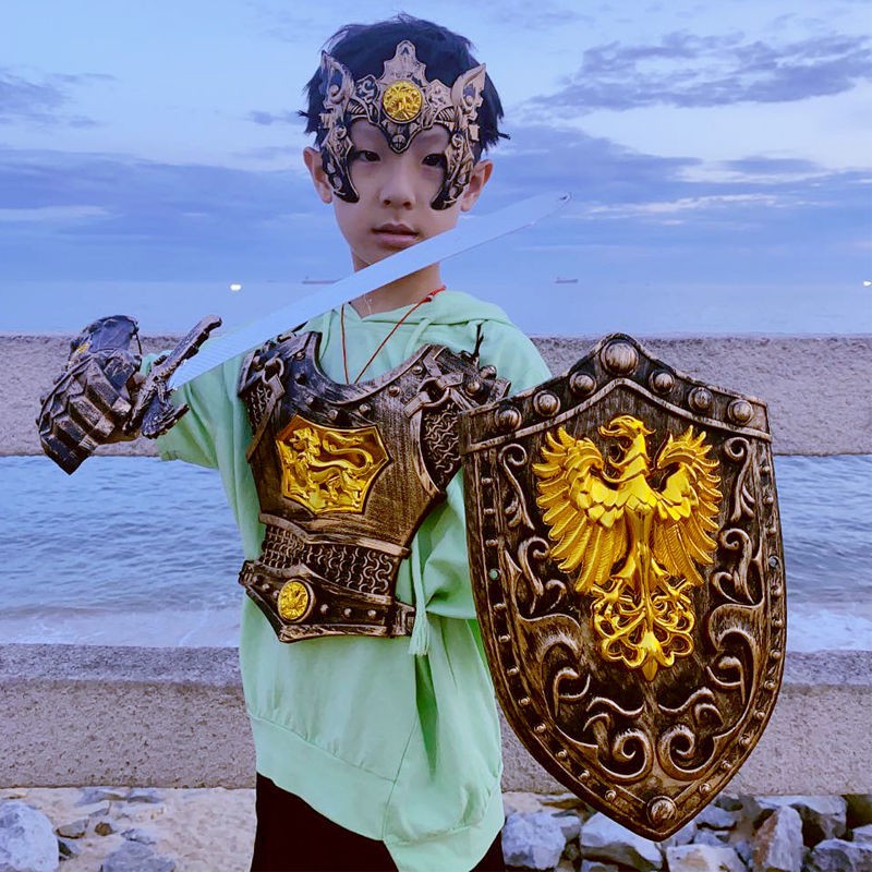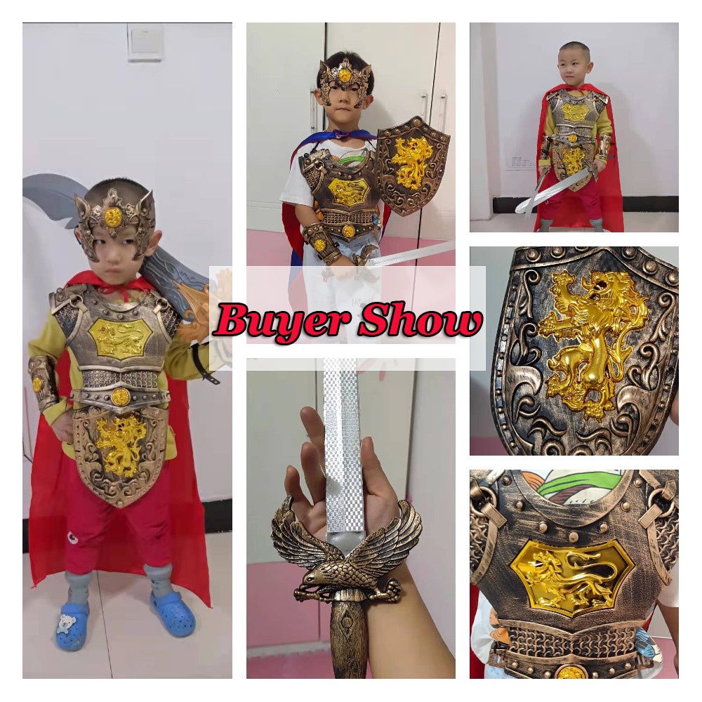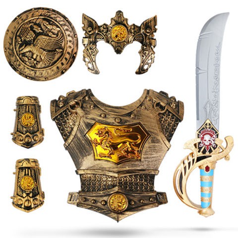 Boy Children'S Toy Roman Warrior Armor Wearable Weapon Plastic Safety Shield Simulation Samurai Sword Axe Mask 4PCS/5PCS Gift for Kids Play Toys