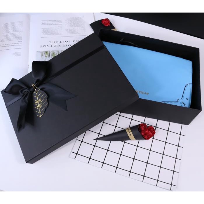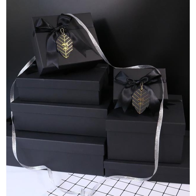 Boyfriend Gift Box Black 9 Different Size, Heavy Duty Empty Boxes for Men, Square Rigid Gift Box with Ribbon DIY Creative Gift Supply
