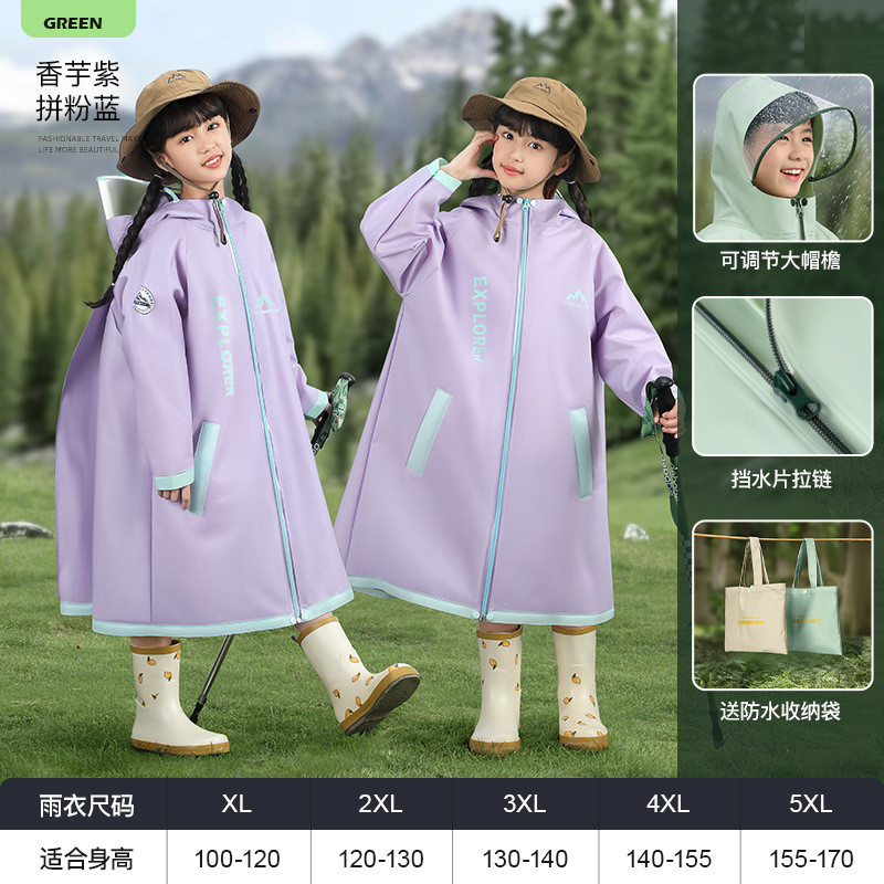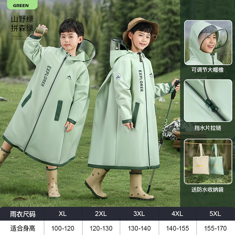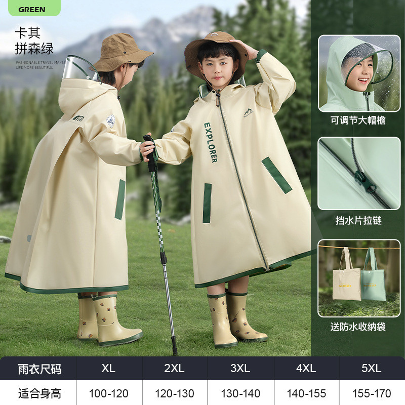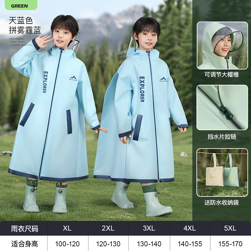 Boys' Raincoat with Backpack, Full Body, Girls' Heavy Rain Protection, Children's Raincoat, Elementary School Students' Rainwear