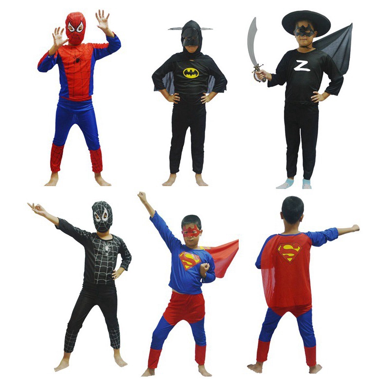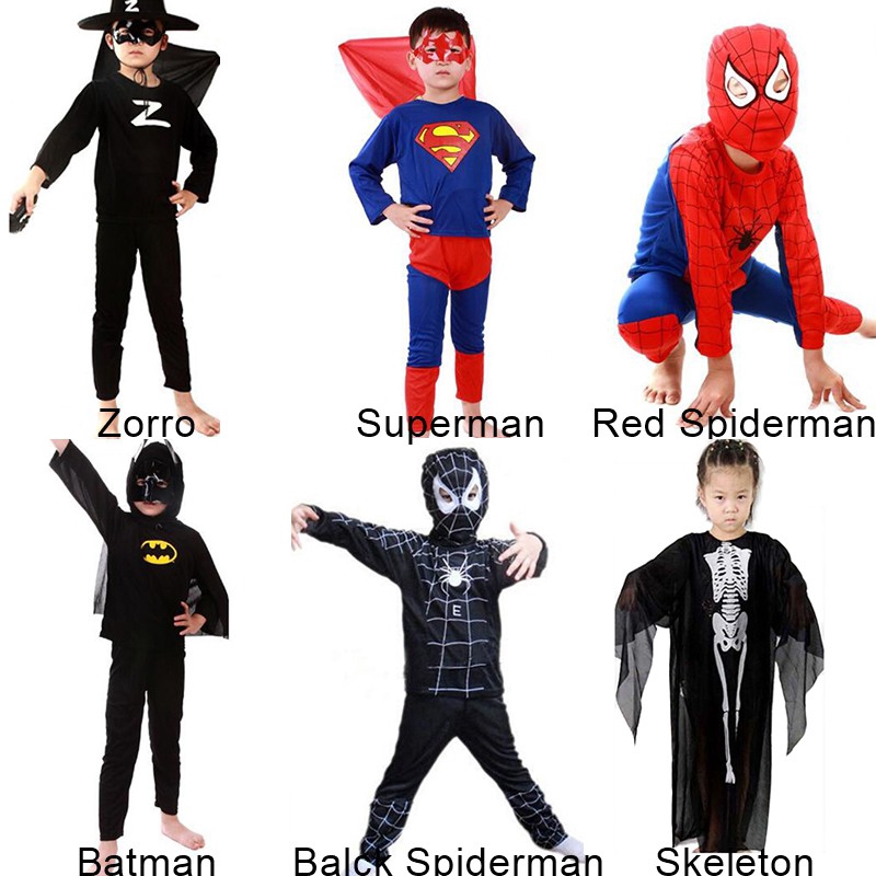 Boys Kids Superhero Fancy Dress Spiderman Batman Superman Cosplay Costume Clothes Outfits 3Pcs
