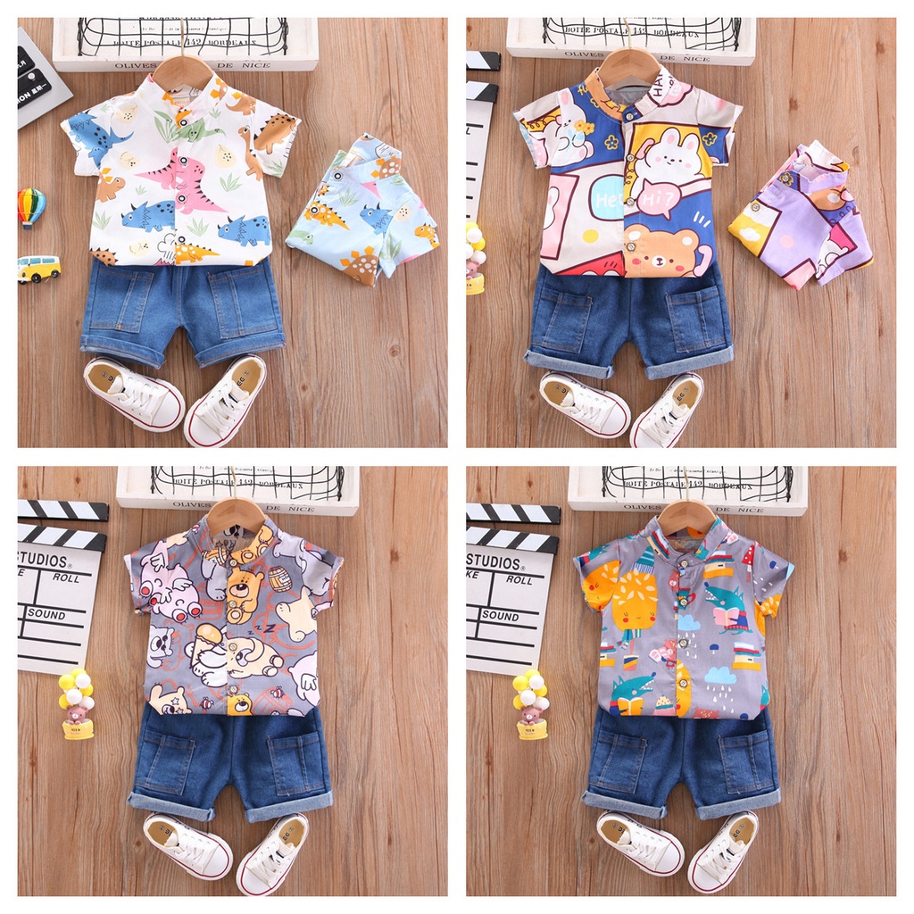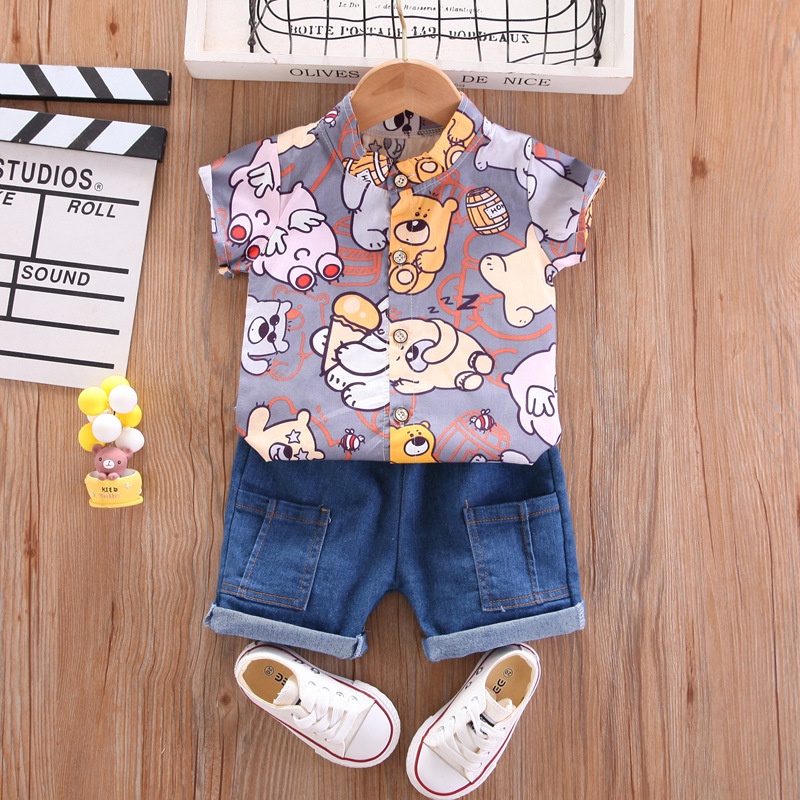 Boys and Girls Short Sleeve Shirt Set Children 0-4 Y Baby Cartoon Pattern Shirt + Shorts 2 Piece Set