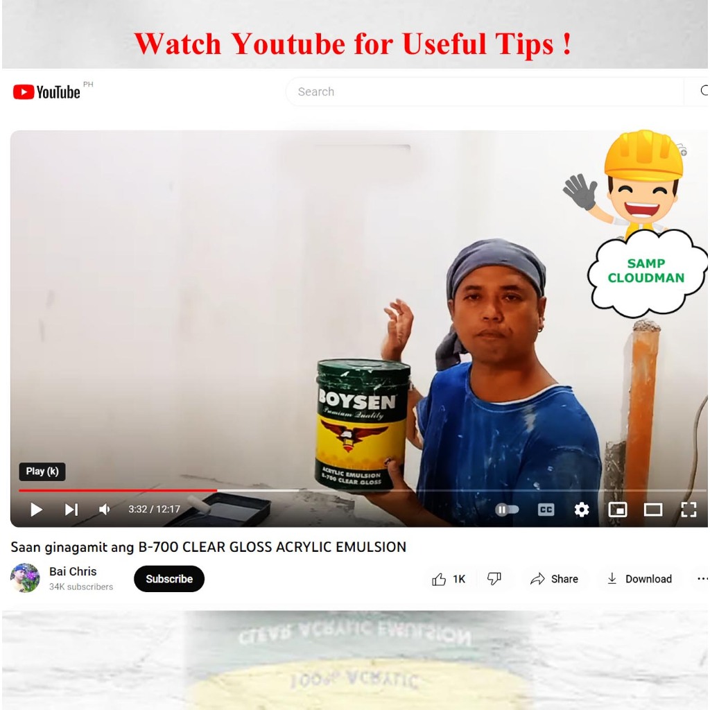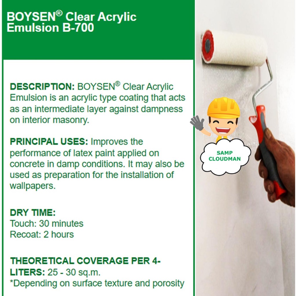 Boysen Clear Acrylic Emulsion Gallon 4L B-700 Gloss Paint Prevent Dampness on Interior Masonry
