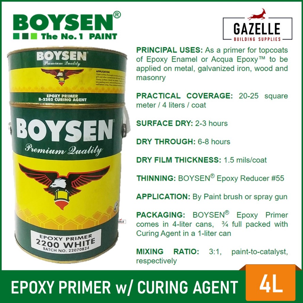 Boysen Epoxy Primer - 4L w/ Curing Agent 3 Colors White / Red Oxide / Gray