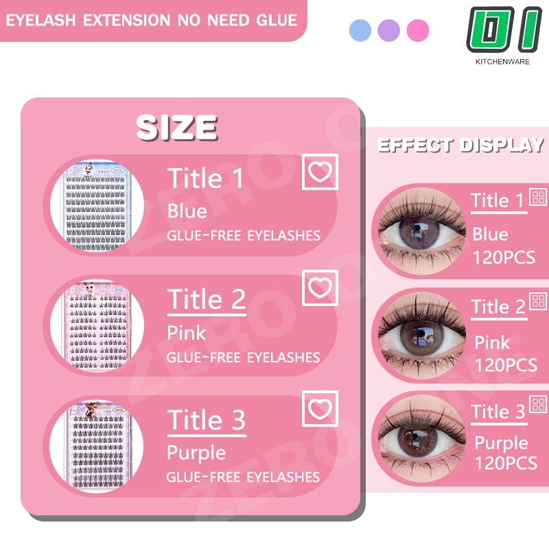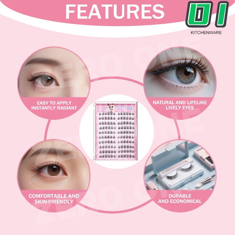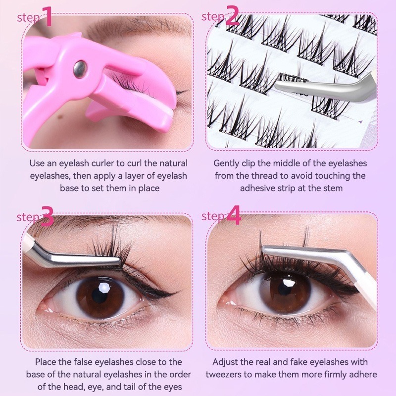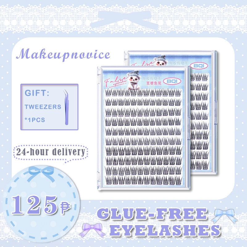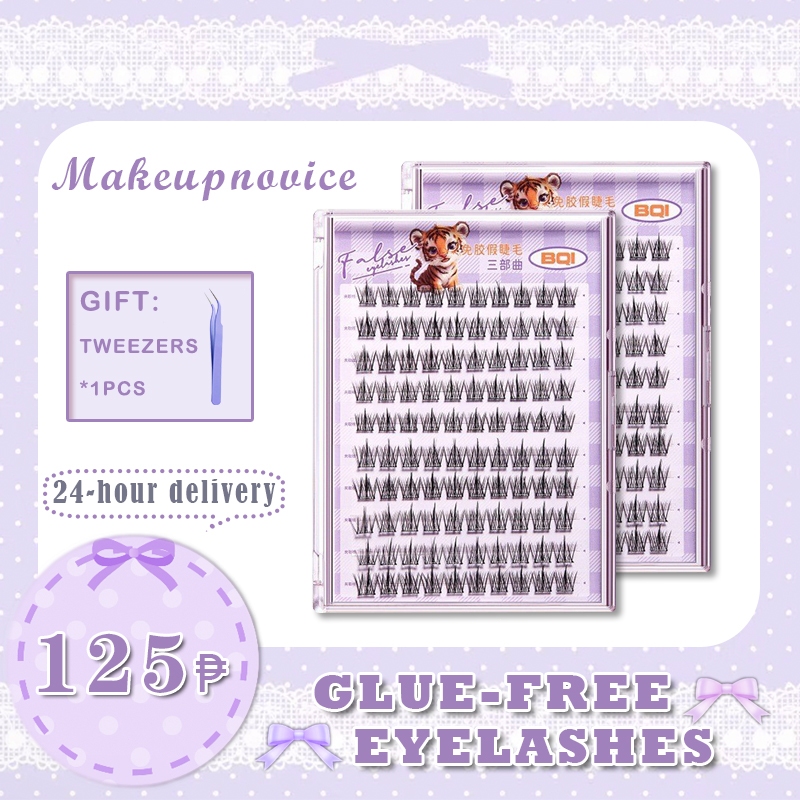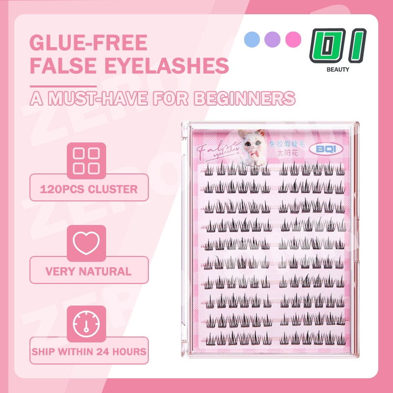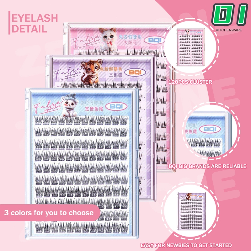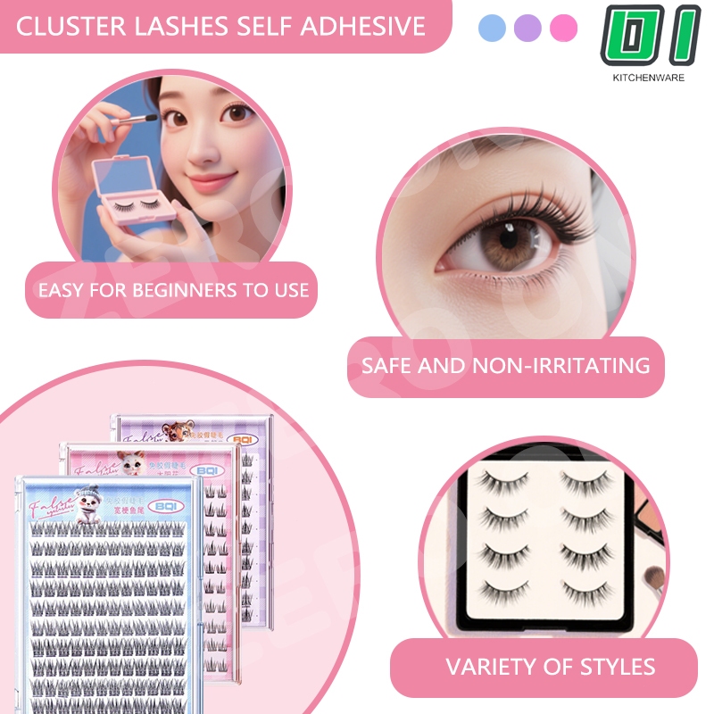 Bqi Cluster Lash False Eyelashes Reusable Waterproof Glue Free Idol 3D Fake Lashes Natural Look