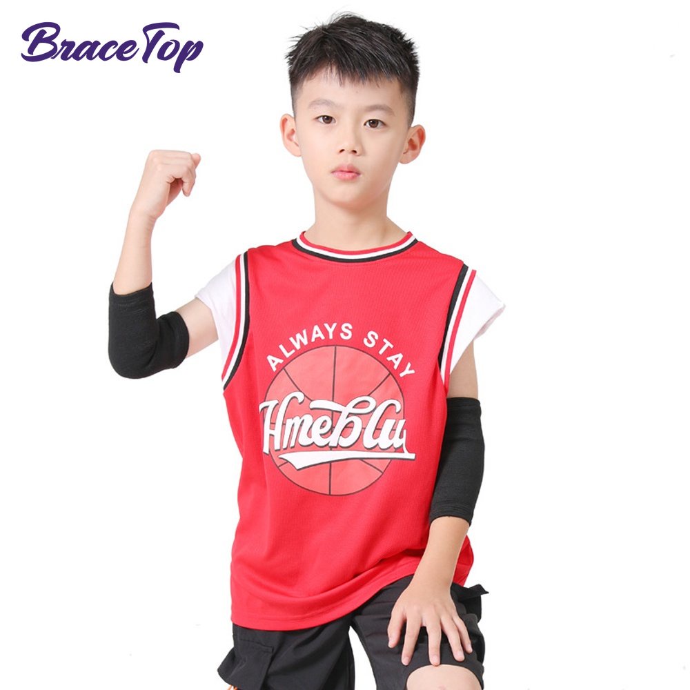 BraceTop 1 Pair Kids elbow pad elbow support with nylon elbow pads elbow protector protective gear elbow supporter for Football Basketball Volleyball Softball Tennis