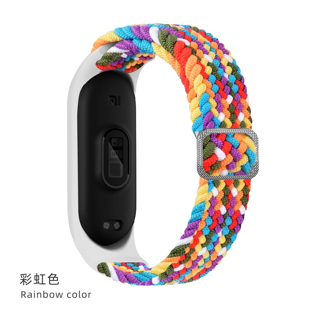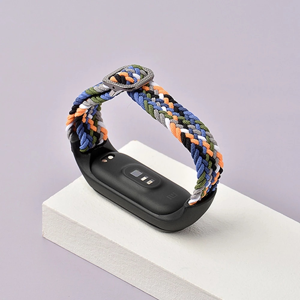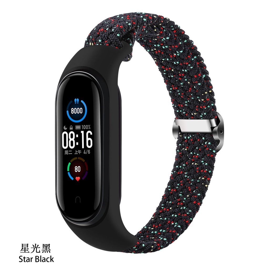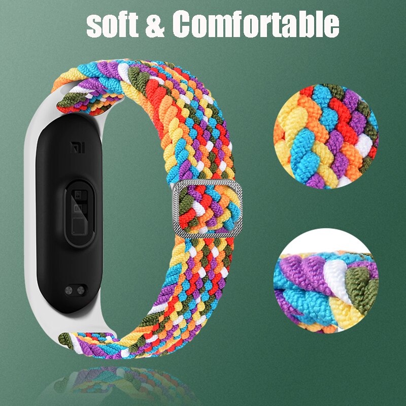 Bracelet for Mi Band 5 6 7 Strap Elastic Adjustable Nylon Braided Wristband for Mi Band 5 6 7 Strap