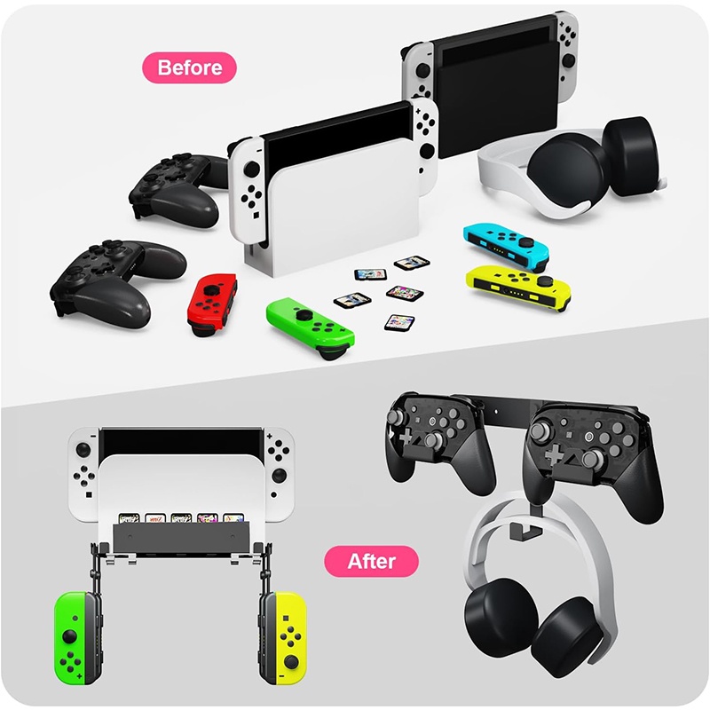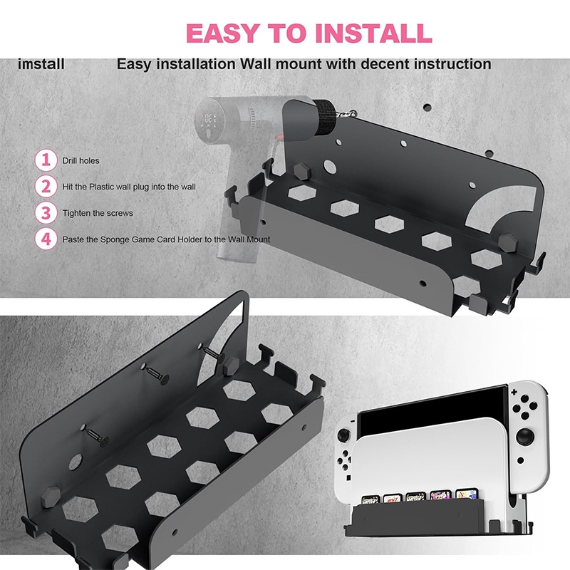 Brackets kit Compatible with Nintendo Switch/Switch OLED Wall Mount,Metal Switch/Switch OLED Stand Vertical Hanging On Wall