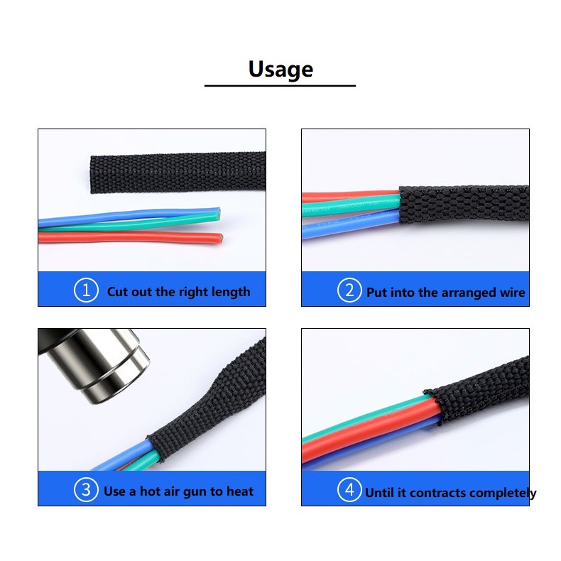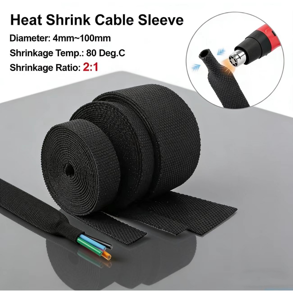 Braided Cable Sleeve Heat Shrink Tube 6/8/10/12/16/20/25/30/35/40/45/50mm ~100mm Insulation Flam Retardant PET Auto Line Organizer Wire Wrap Sheath Protection