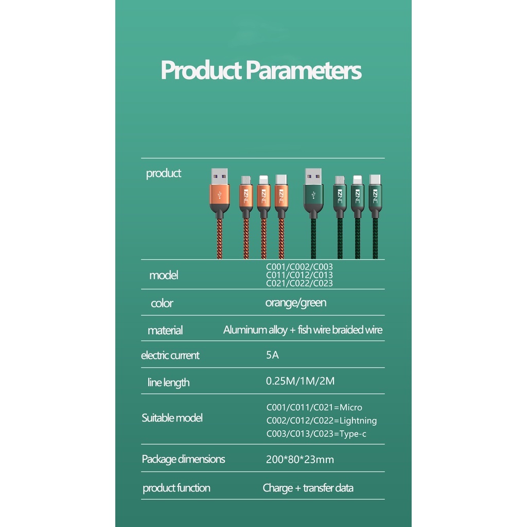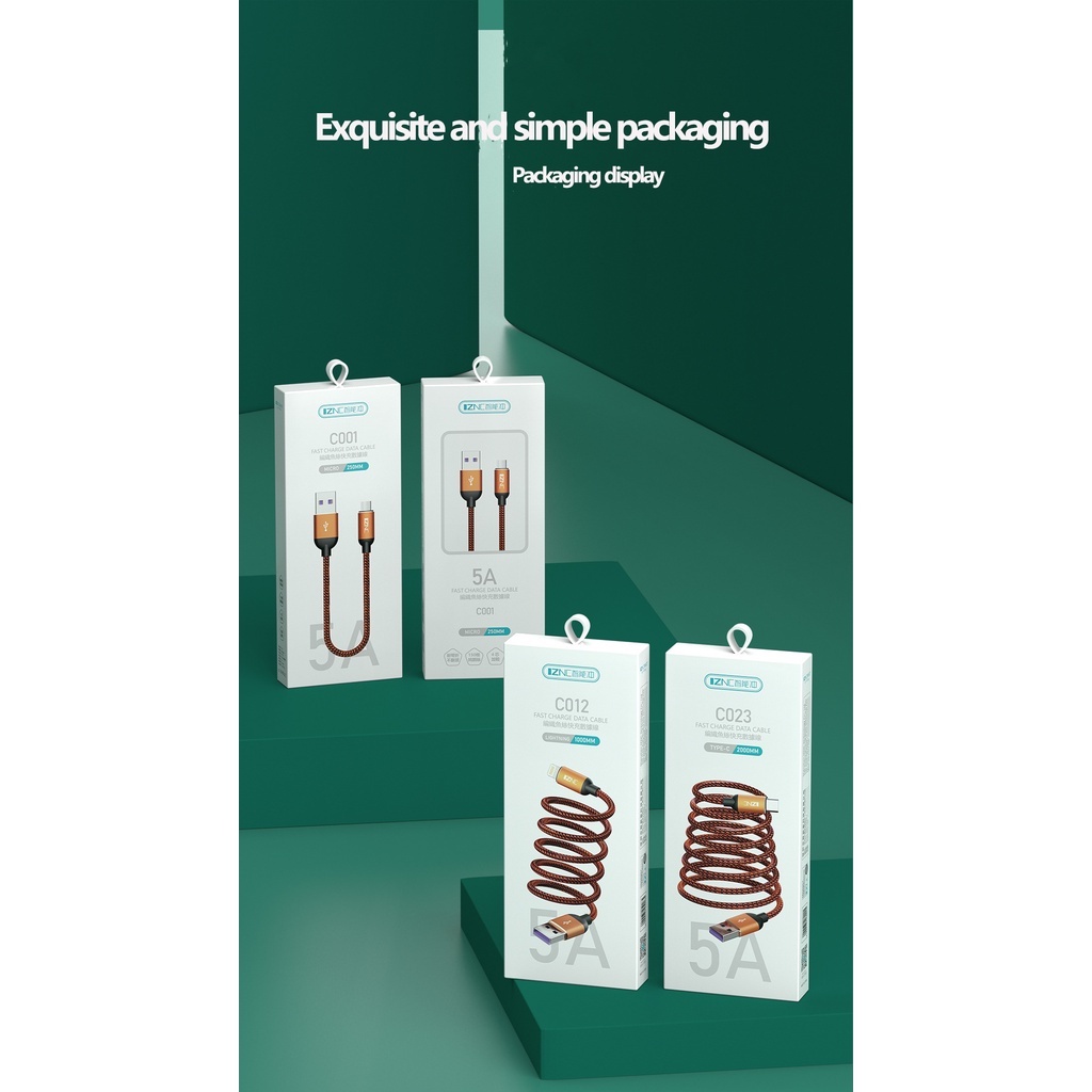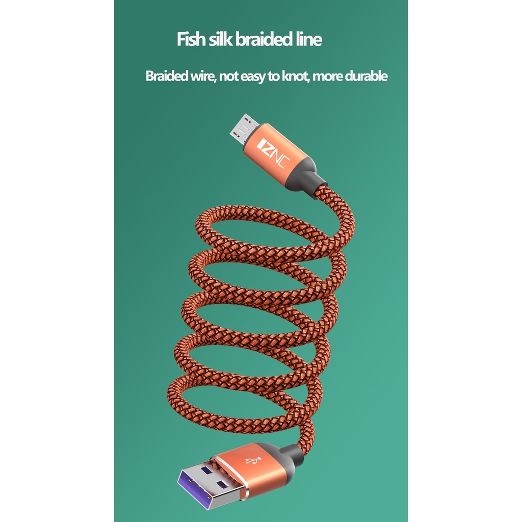 Braided data cable fish wire power cord braided wiring 1 m 2 m 5A charging cable USB mobile phone with packaging