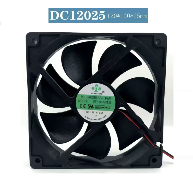 Brand New POWERYEAR PY-1225H12S 12V 0.35A 12CM 12025 Cooling Fan 2 Wires