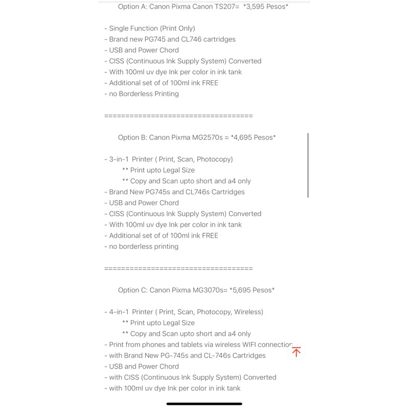 Brand New Printer TS207 MG2570s MG3070s Printer, Scanner, Copier, WIFI (Continuous Ink) CISS
