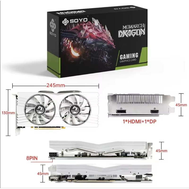 Brand New Soyo AMD RX 580 8GB DVI HDMI DP Gaming Graphics Card GPU