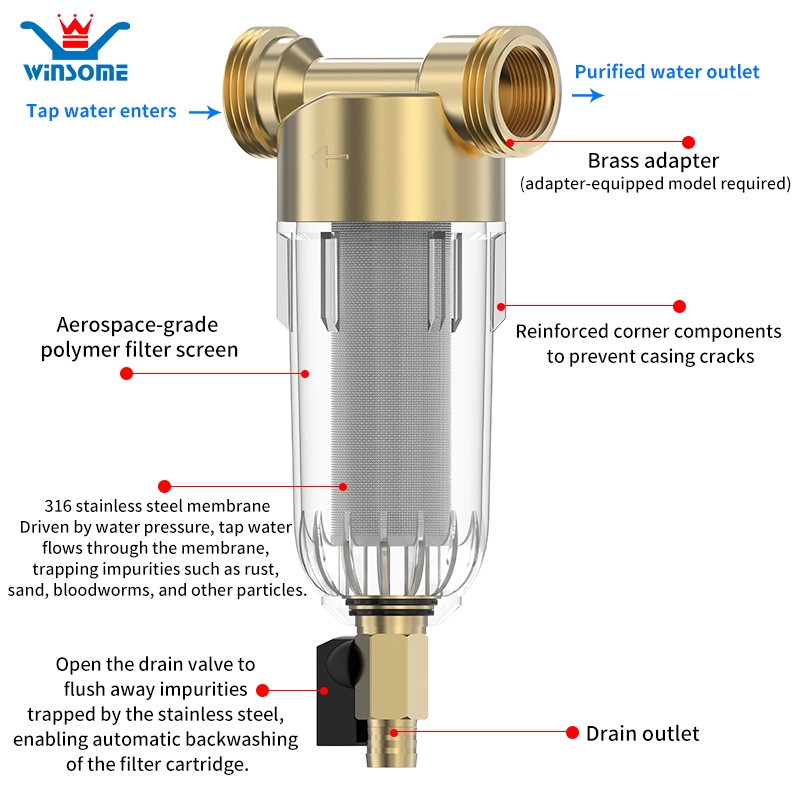 Brass 40 Micron Filtration Reusable Spin-down Pre-Sediment Water Pre-Filter filter for water