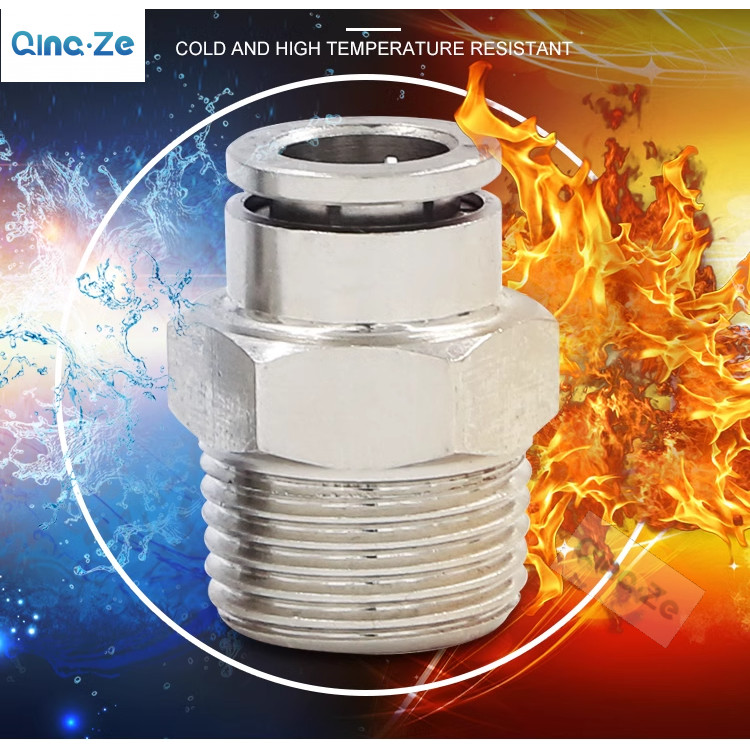 Brass Nickel-Plated Trachea Quick Connector 8mm Pneumatic Straight-through Butt Quick Plug PC4-01/6-02/8-03 PU Trachea Connector Fittings Male Thread
