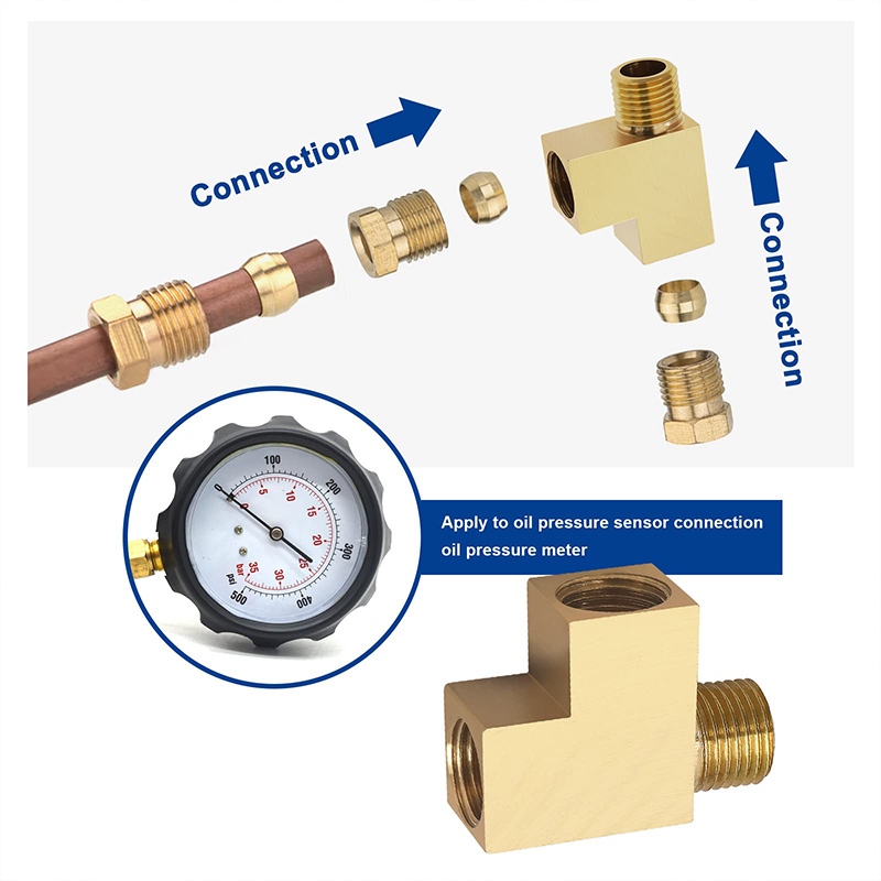 Brass Pipe Fitting 3 Way Pipe Adapter NPT M10x1 Male Adapter Fittings F/Pipe/Tank 3TZ-8-10
