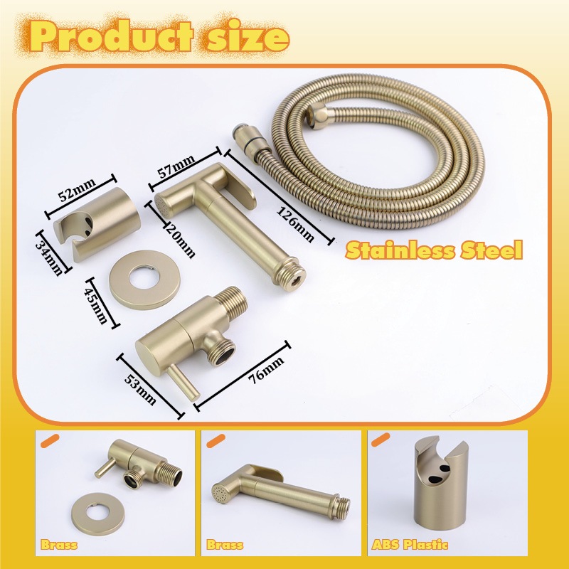 Brass Sprayer Set Rose Gold Switch Angle Valve ABS Plastic Bracket Chrome Bathroom High Pressure Clean Sprayer