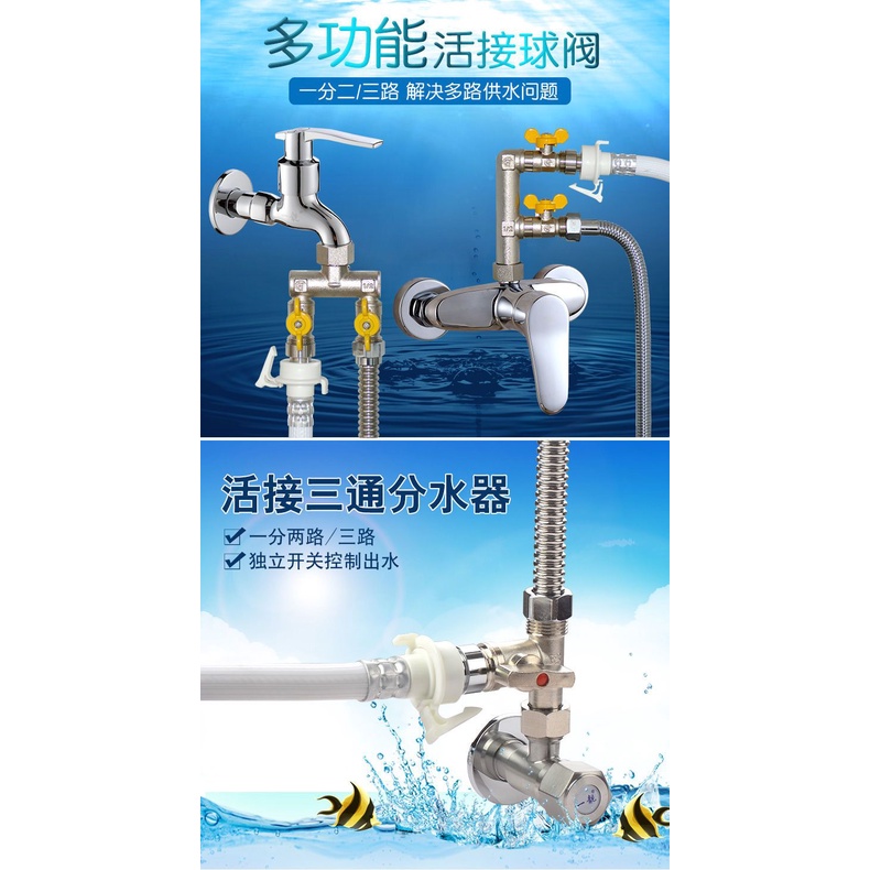Brass live connection three-way water separator ball valve one-in two-out angle valve switch water pipe shunt 4-point faucet
