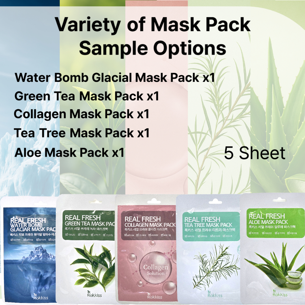 Rokkiss Korean Sheet Mask | 5 Types | Hydrating, Soothing, Brightening Daily Skincare