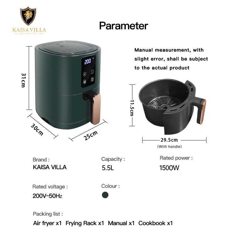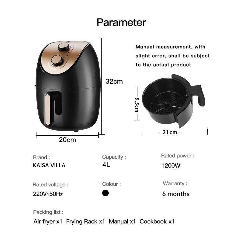 Kaisar`se`Villa air fyer oven fries air fyer 4.5 liters Deep Fryer air fryer burger and%CY%fries+un