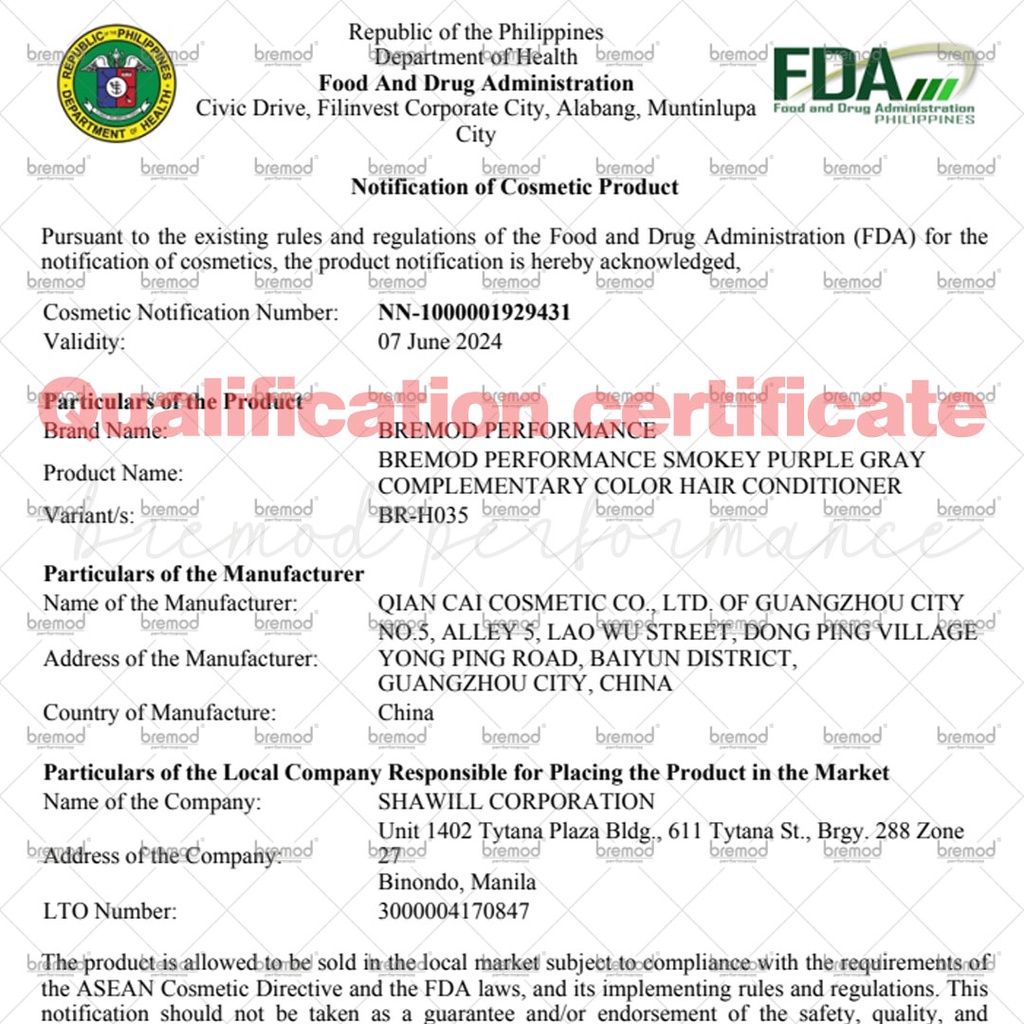 Bremod Color Complementary conditioner Locking Nourish Damaged Hair Smokey Purple Gray 100ml BR-H035