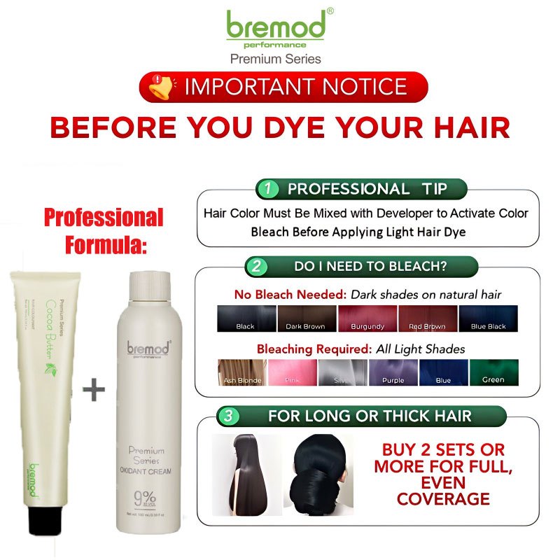Bremod Hair Color Premium Cocoa Ash/ Purple / Blue /Pink Brown /Blone Hair Beauty 100ml