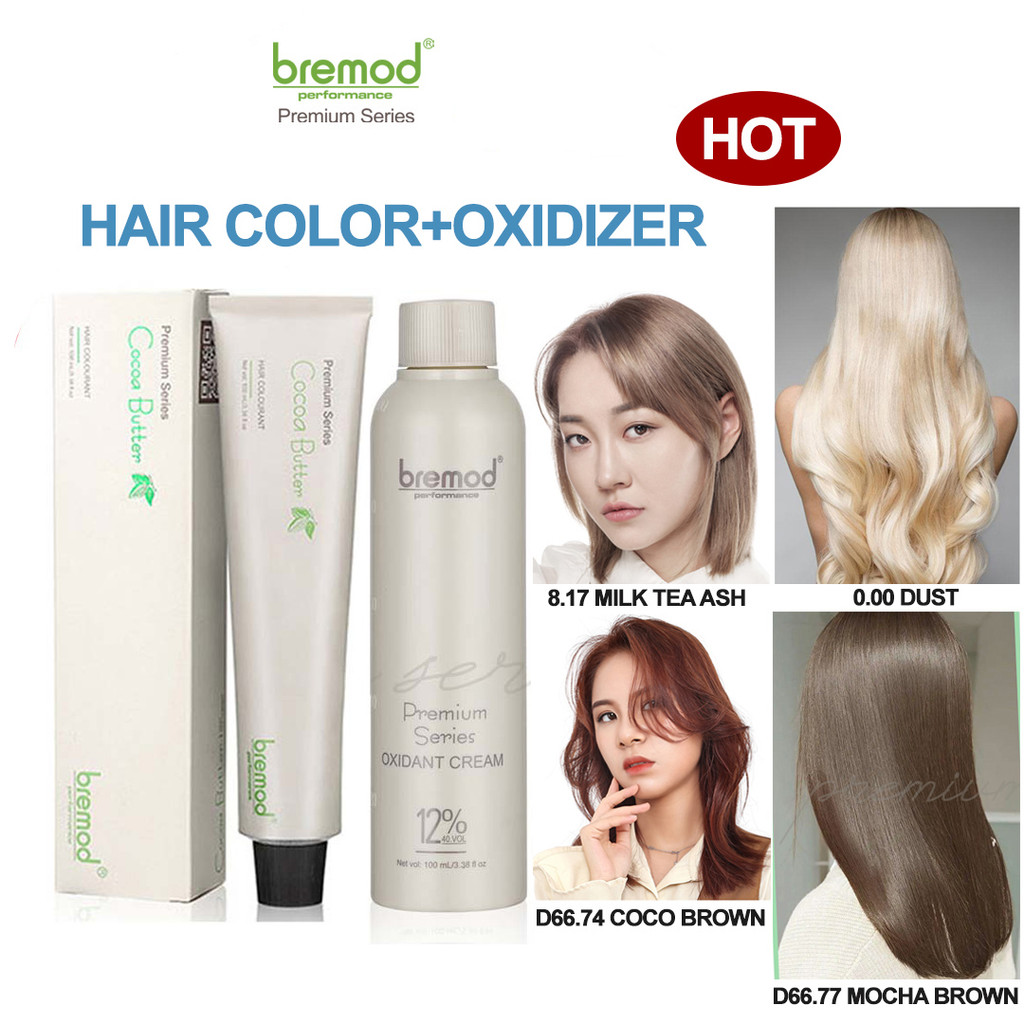 Bremod Hair Color with Oxidizer Set 100ml Milk Tea Ash Dust Aoki Ash Black Honey Tea Coco Brown