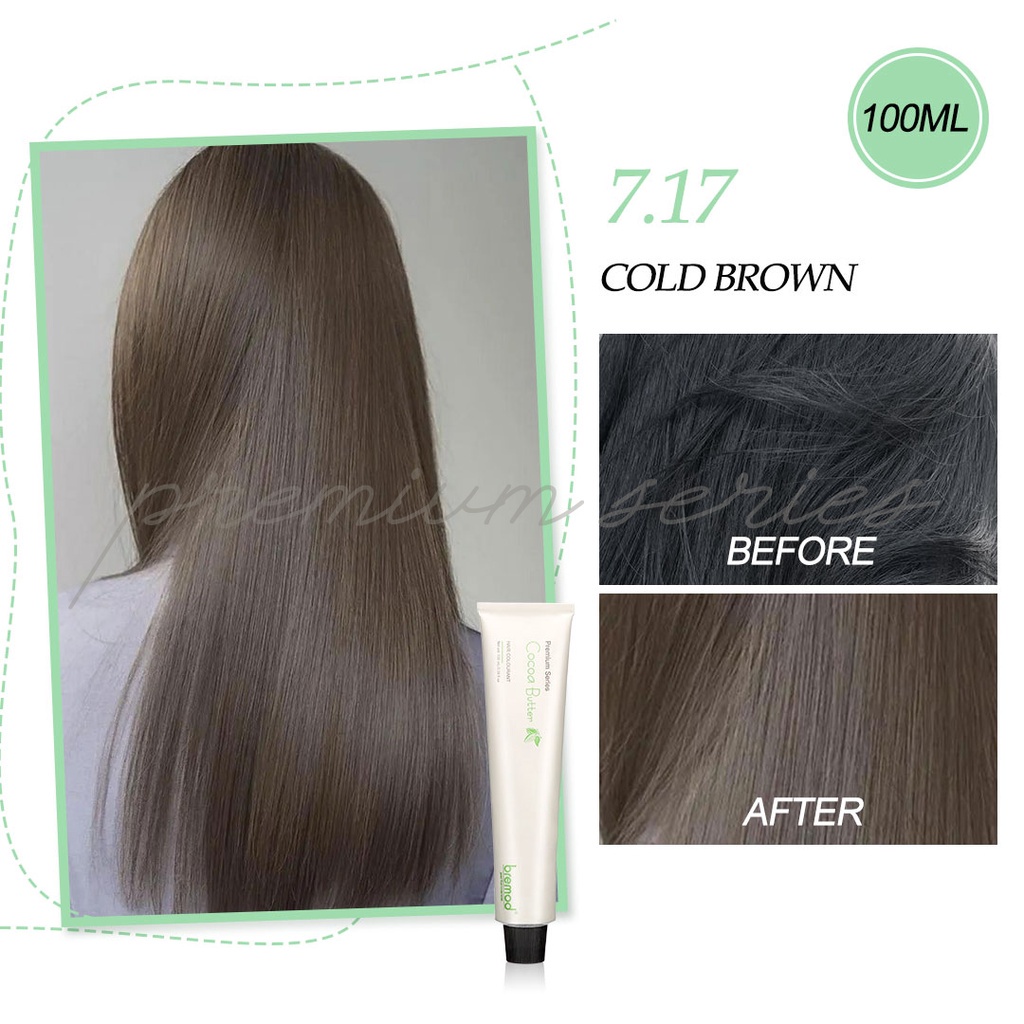 Bremod Premium Cocoa Butter Hair Color Dyed Cream Fashion Light Ash Gray Brown Rose 0.00 Dust 100 ml