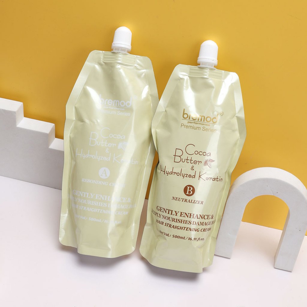 Bremod Premium Keratin Hair Straightening Rebonding Cream Cocoa Butter Hydrolyzed 2*500ml