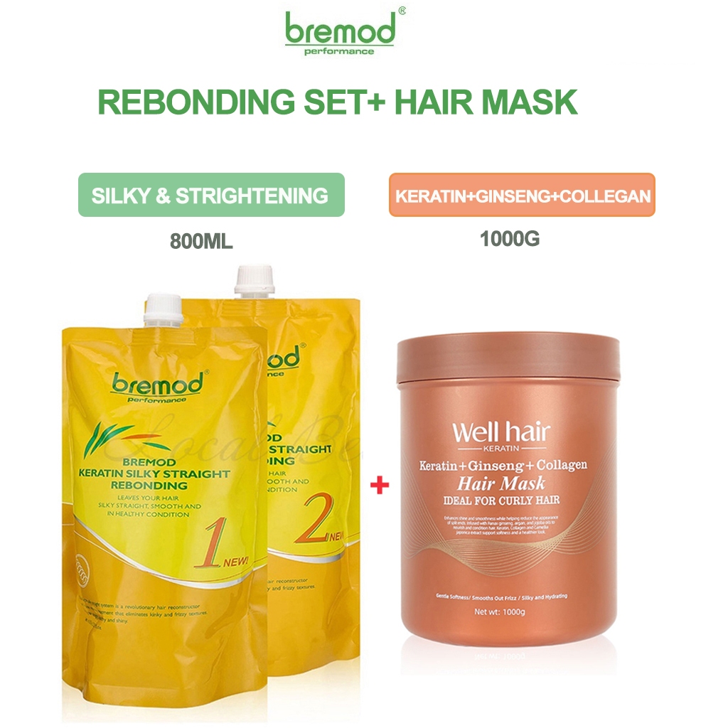 Bremod Rebonding Set Silky Hair Straightening with Hair Mask Treatment Keratin Rebond Cream Original