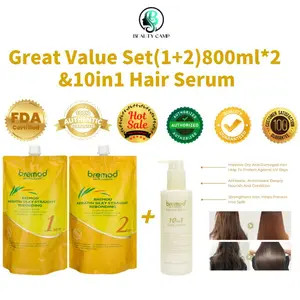 Bremod Silky Rebonding Set 800ml Keratin Stringhten Curly Dry Frizzy Hair with 10 IN 1 Hair Serum