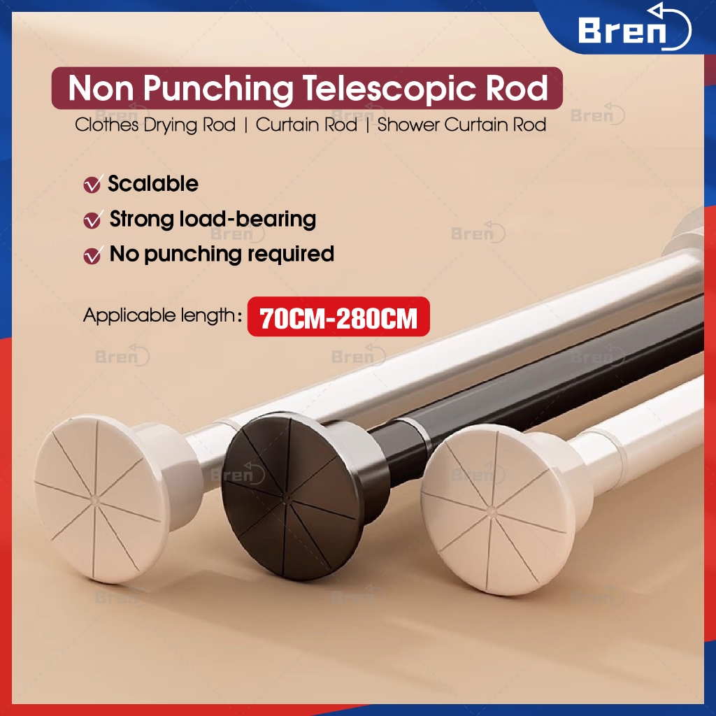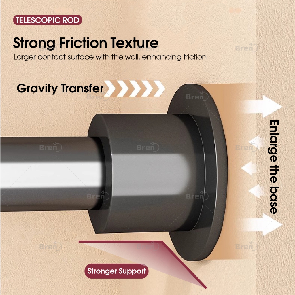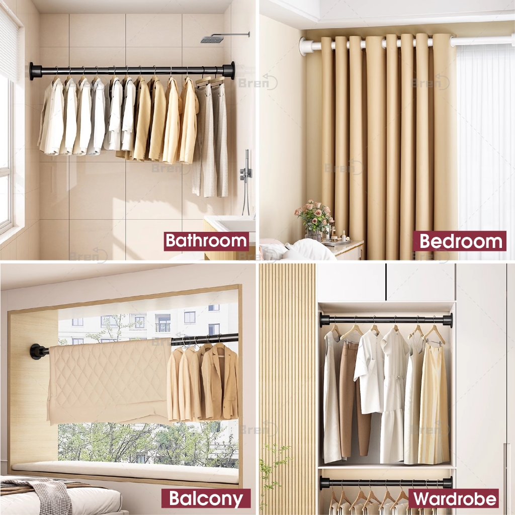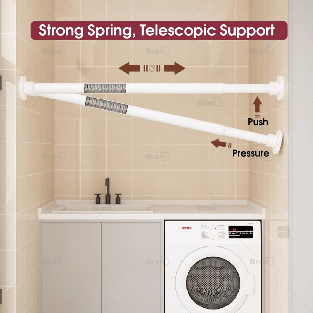 Bren Adjustable Shower Curtain Rod Extendable Tension Rod Bathroom Cabinet Telescopic Hanger Rod Punch-free