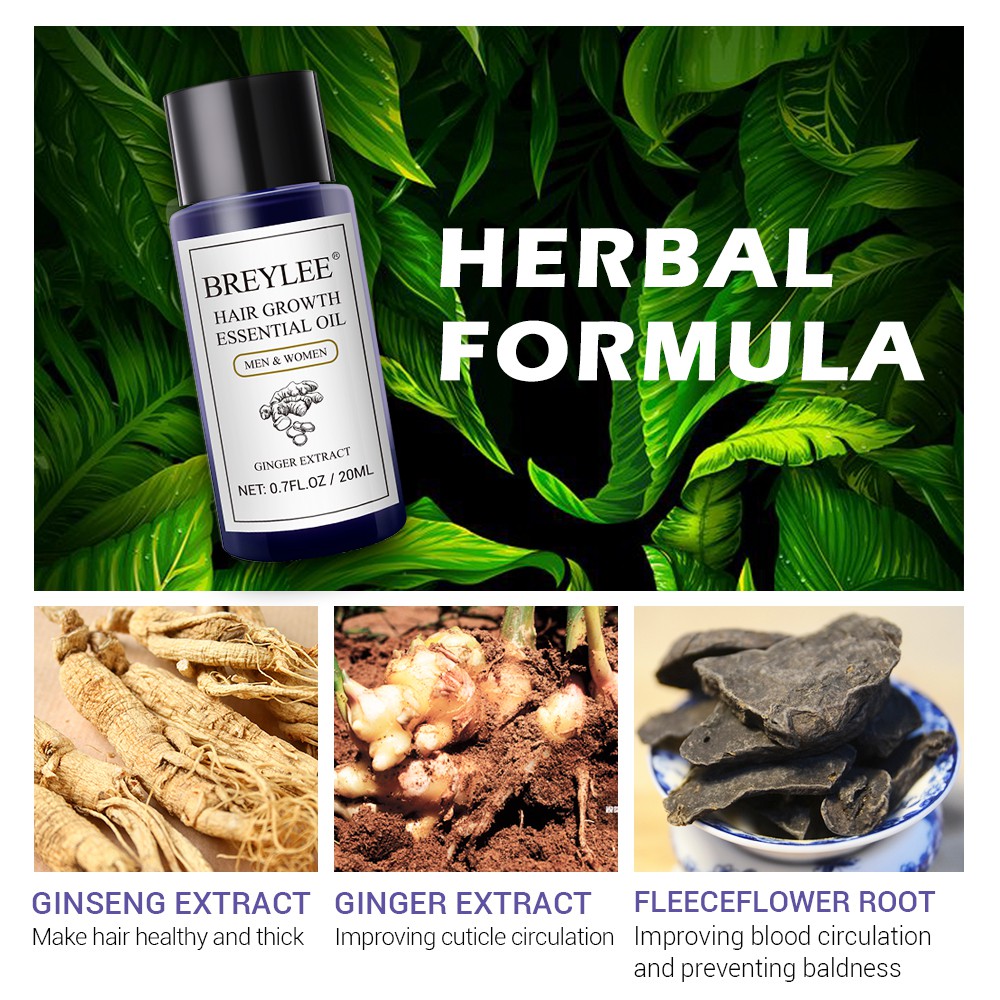Breylee Hair Growth Essential Oil Anti Hair Loss Liquid Promotes Thick Fast Hair Growth Treatment Prevent Baldness Serum 20ml