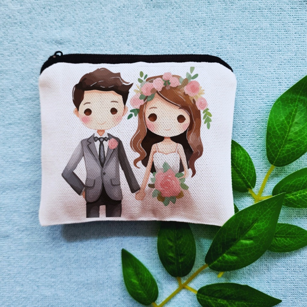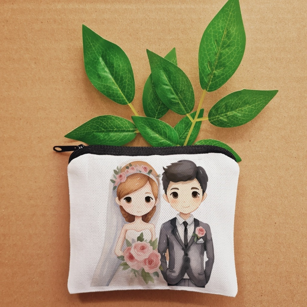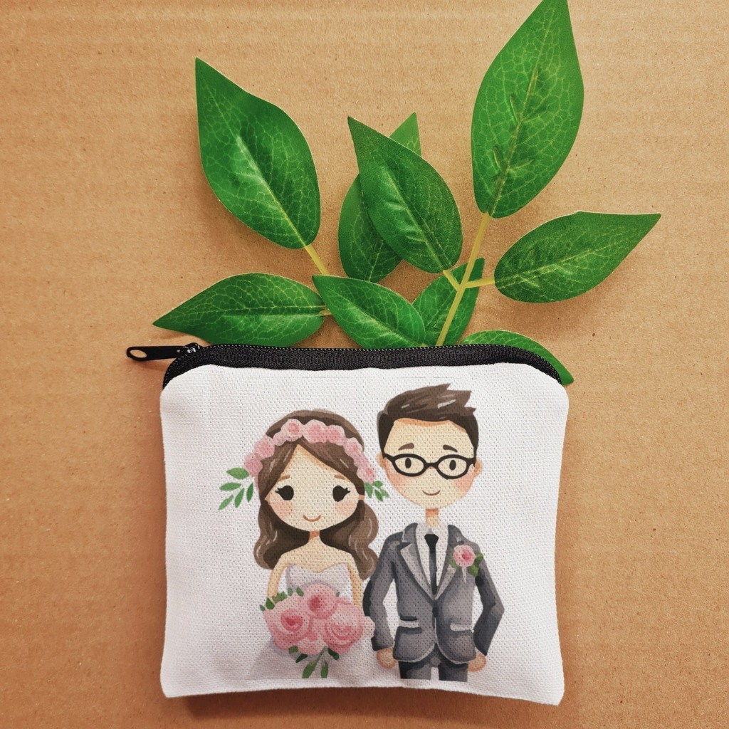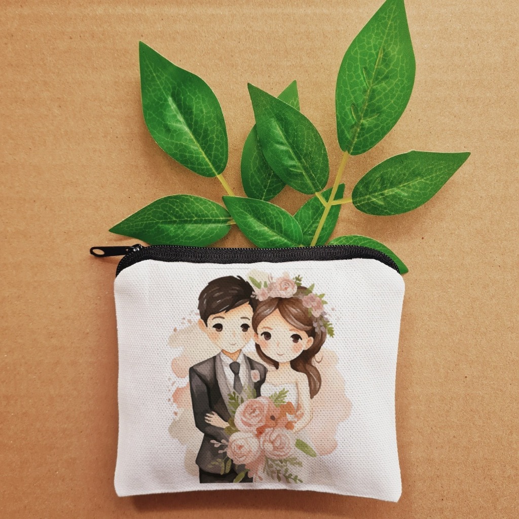 Bride Groom Wedding Design Useful Coin Purse Wallet Storage for Essentials Travel Purse Giveaways