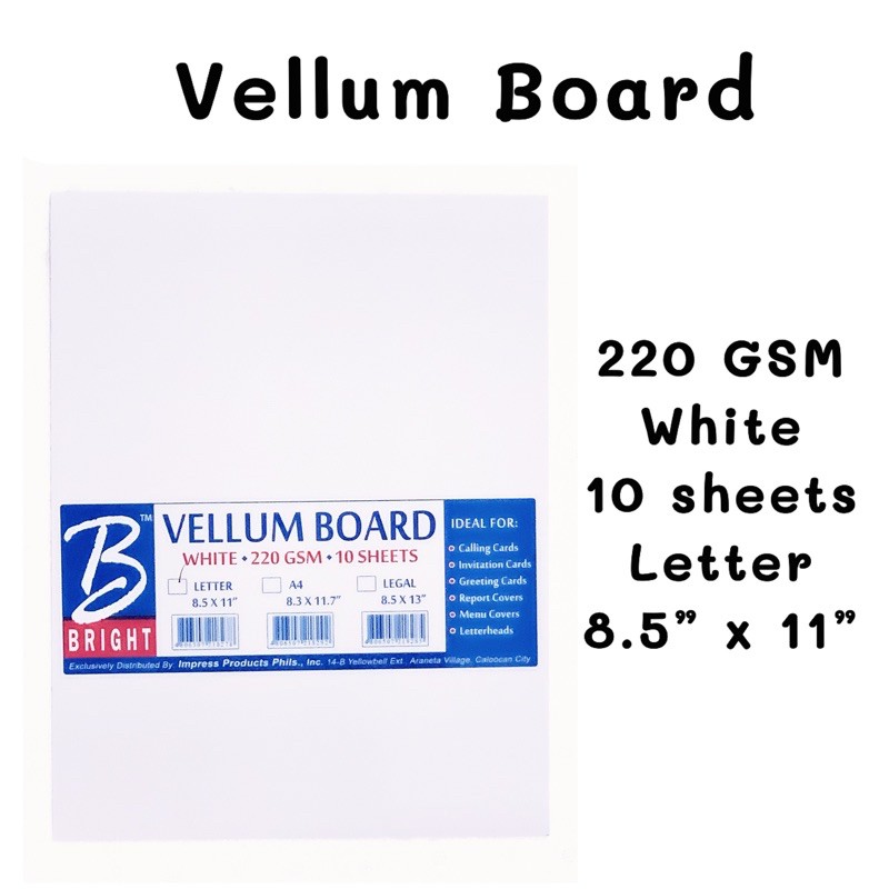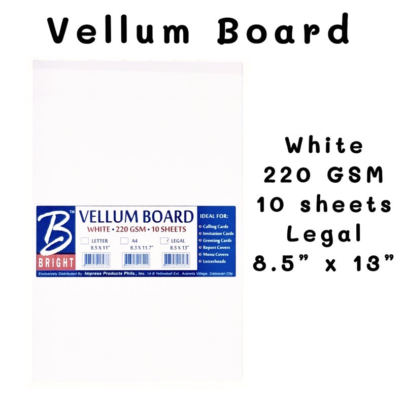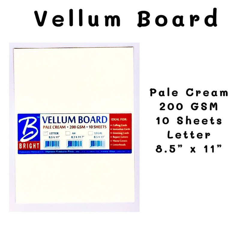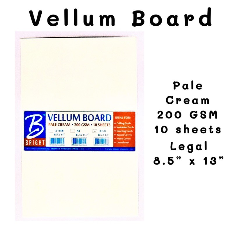 Bright Vellum Board 220 GSM white and pale cream 10 pieces per pack letter and legal size